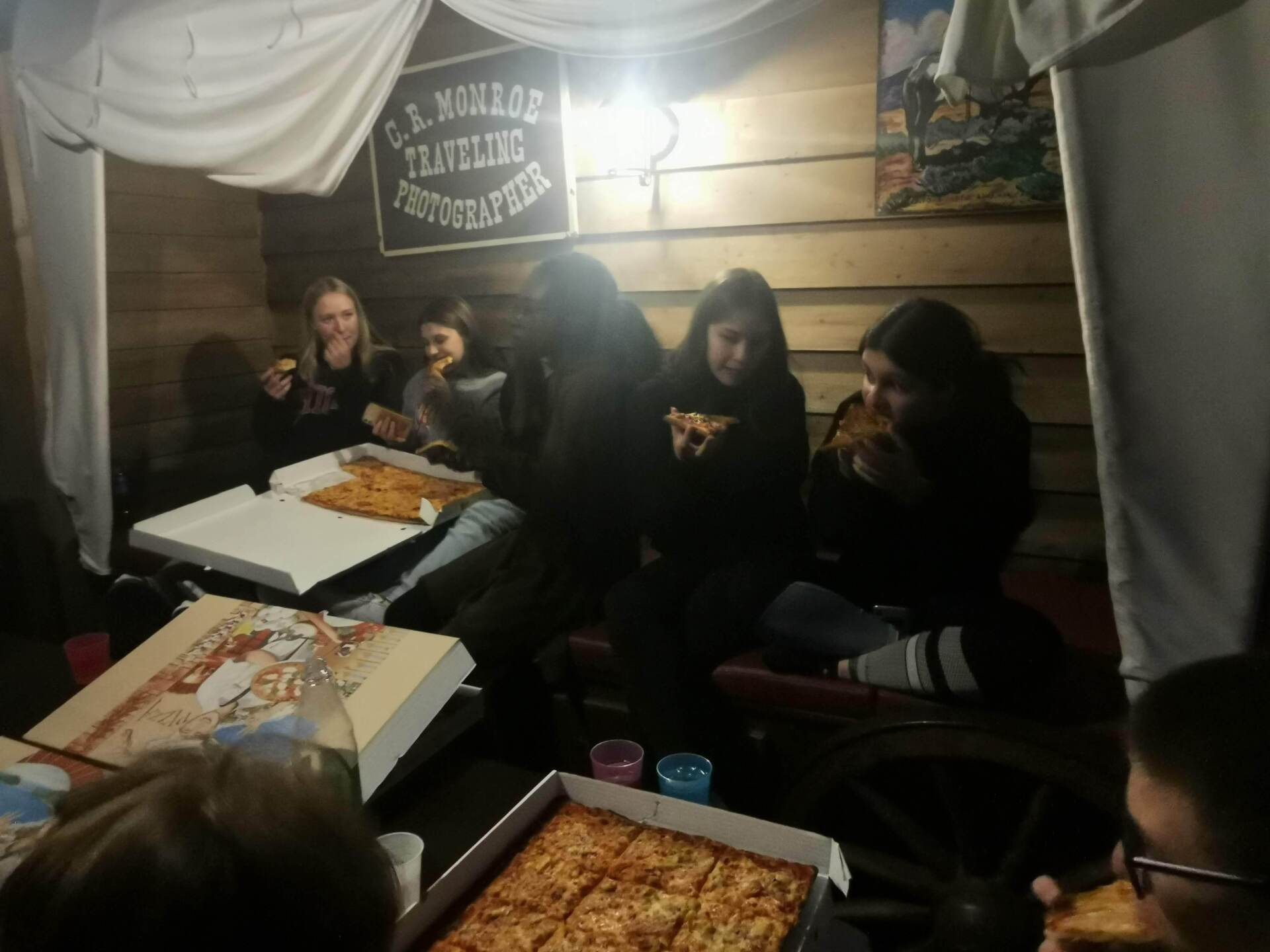 Um 12:45 Uhr haben wir uns am Bahnhof getroffen und uns in den Zug gesetzt. Ein paar Stunden später kamen wir dann am Europapark-Resort an. Jede Gruppe bekam zwei Zimmerkarten (was noch zu Komplikationen führen sollte, aber dazu später mehr) und die Gruppen bezogen munter ihre Zimmer. Dann begann die Tour zum Lidl, welcher für die Zeit der Klassenfahrt der Einkaufsladen unseres Vertrauens war. Das einzige Problem war nur, dass er auf der anderen Seite des (nennen wir es mal lieb) Dorfes war. Der Bollerwagen von Björn half da ungemein. Abends bestellten wir noch sieben Pizzen - alle in Partygröße - lecker!