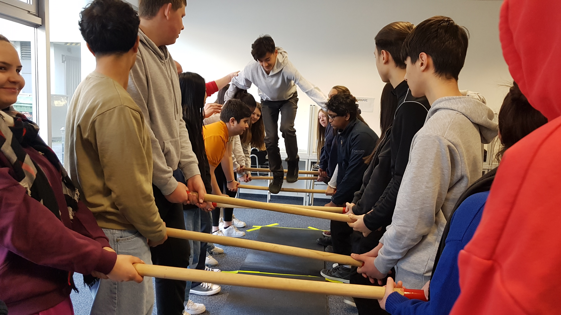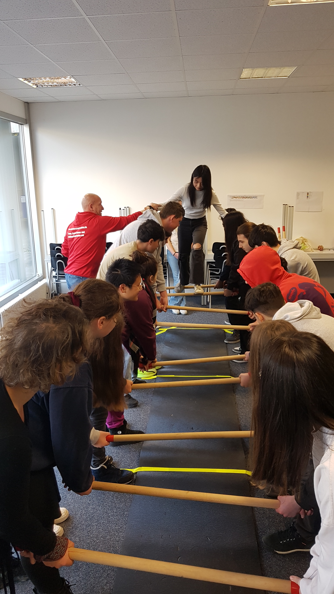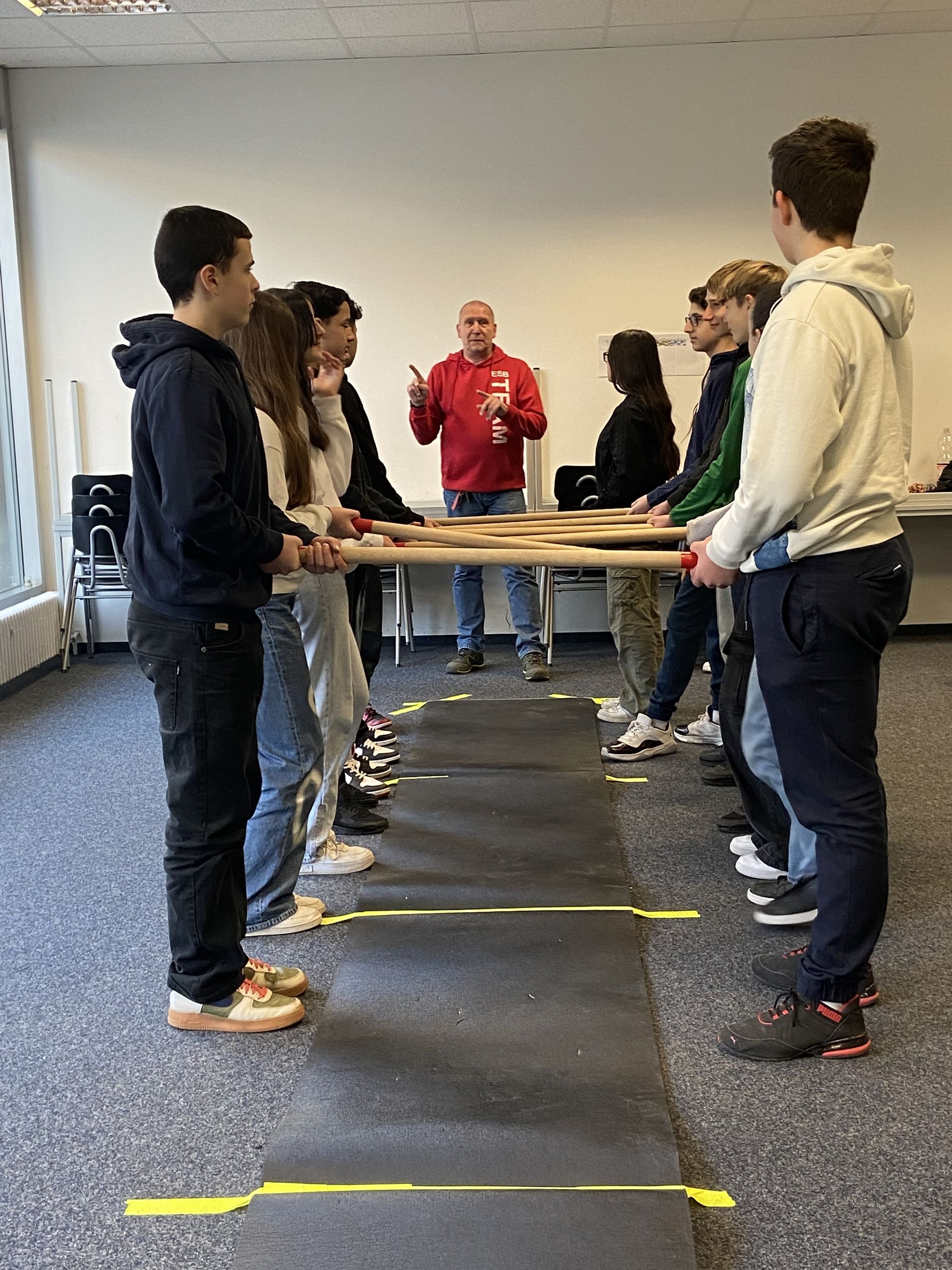 In einem Workshop wurden erlebnispädagogische Elemente aufgezeigt und mit den Schüler*innen besprochen, was diese mit dem Thema Sucht zu tun haben.