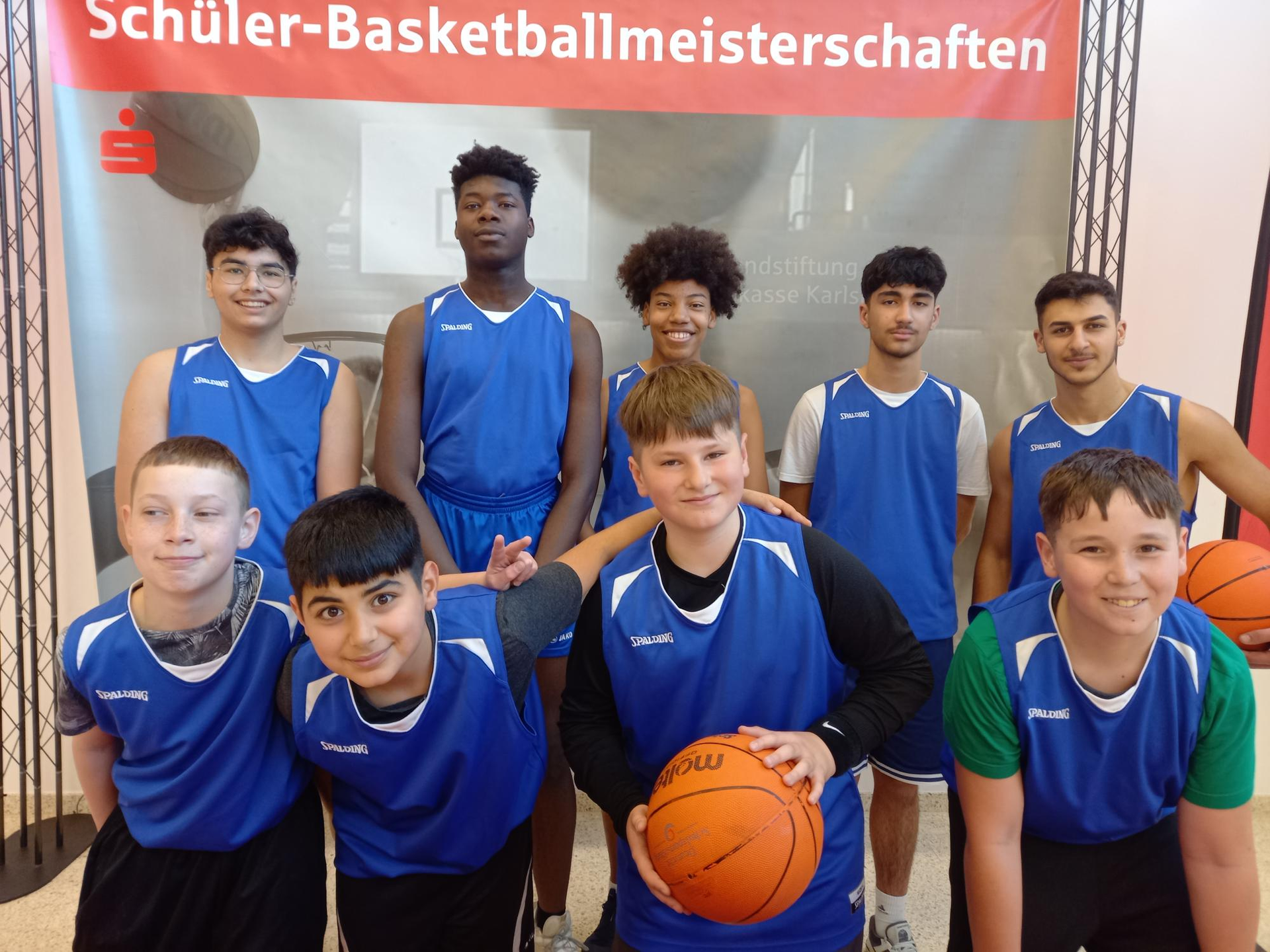 April 2023 - Nach drei Jahren Corona-Zwangspause fanden endlich wieder die Karlsruher Schülerstadtmeisterschaften im Basketball statt. Unsere Mannschaft hat stark aufgespielt und als Gruppenzweiter nur knapp das Halbfinale verpasst. Unsere Jungs haben dabei die Hebel-Realschule würdig vertreten mit einer guten Teamarbeit trotz starker Konkurrenz.