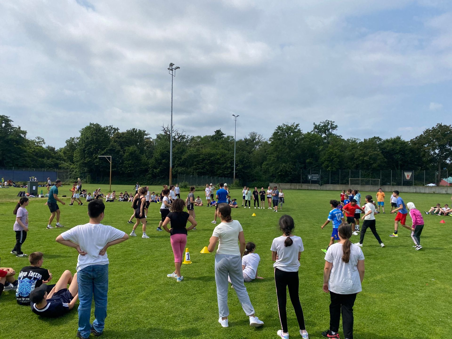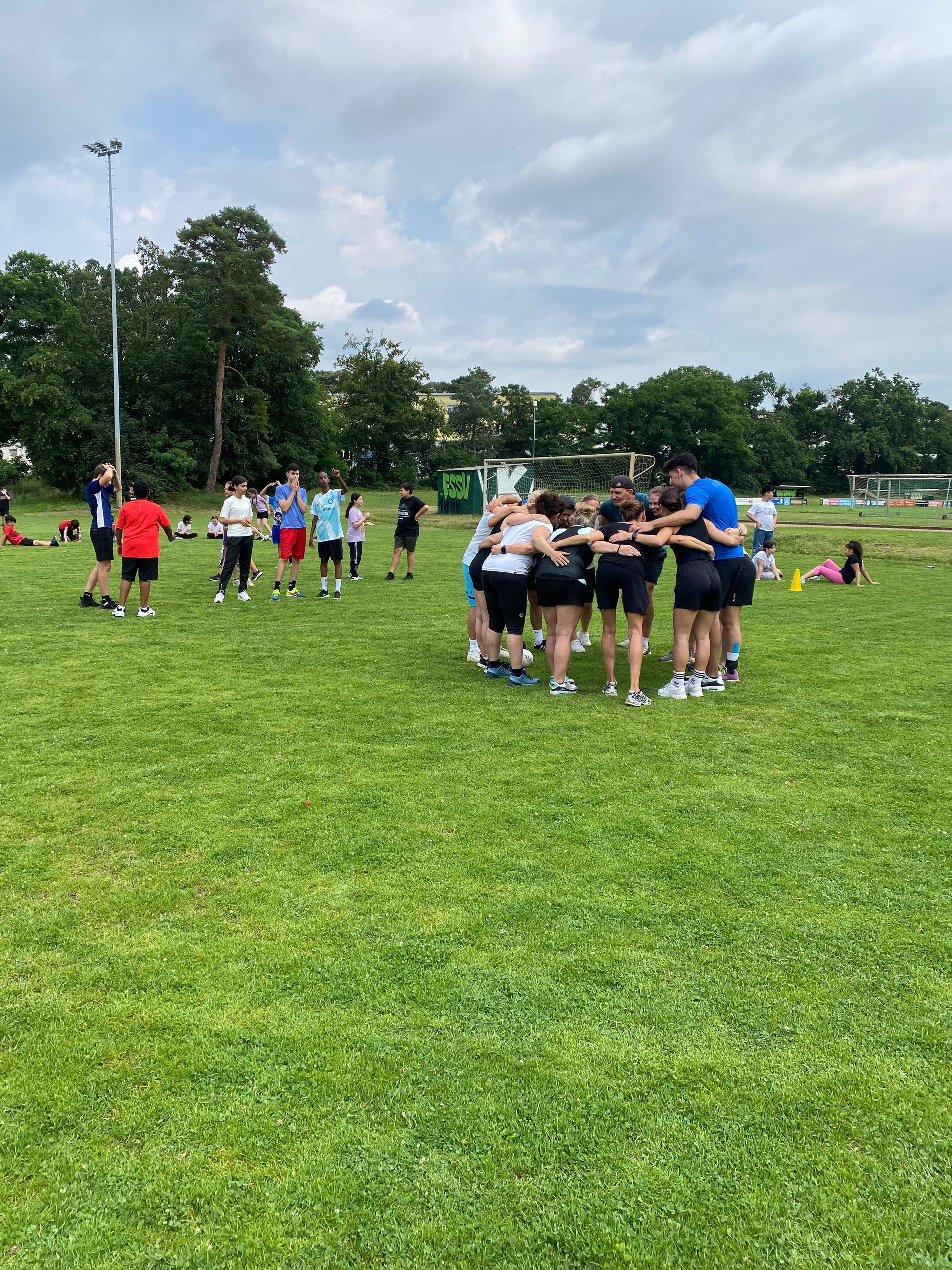 Juni 2024 - Am Freitag den 28.06.2024 fand das erste Völkerballturnier der Hebel Realschule statt. Die Klassen 5a, 5b, 6a, 6b 7a und 7b spielten alle gegeneinander. Jede Klasse hatte sich im Voraus einen Teamnamen überlegt. Der Treffpunkt war um 8.30 Uhr am FFSV in Karlsruhe. Alle Schüler*innen hatten die Möglichkeit etwas zu Essen wie zum Beispiel Kuchen oder Muffins mitzubringen. Nach Ankunft aller Kinder, gab es ein Aufwärmspiel, dabei wurde viel gerannt, Hampelmänner, Strecksprünge und Planks gemacht. Aufgewärmt haben dann die Spiele begonnen.
