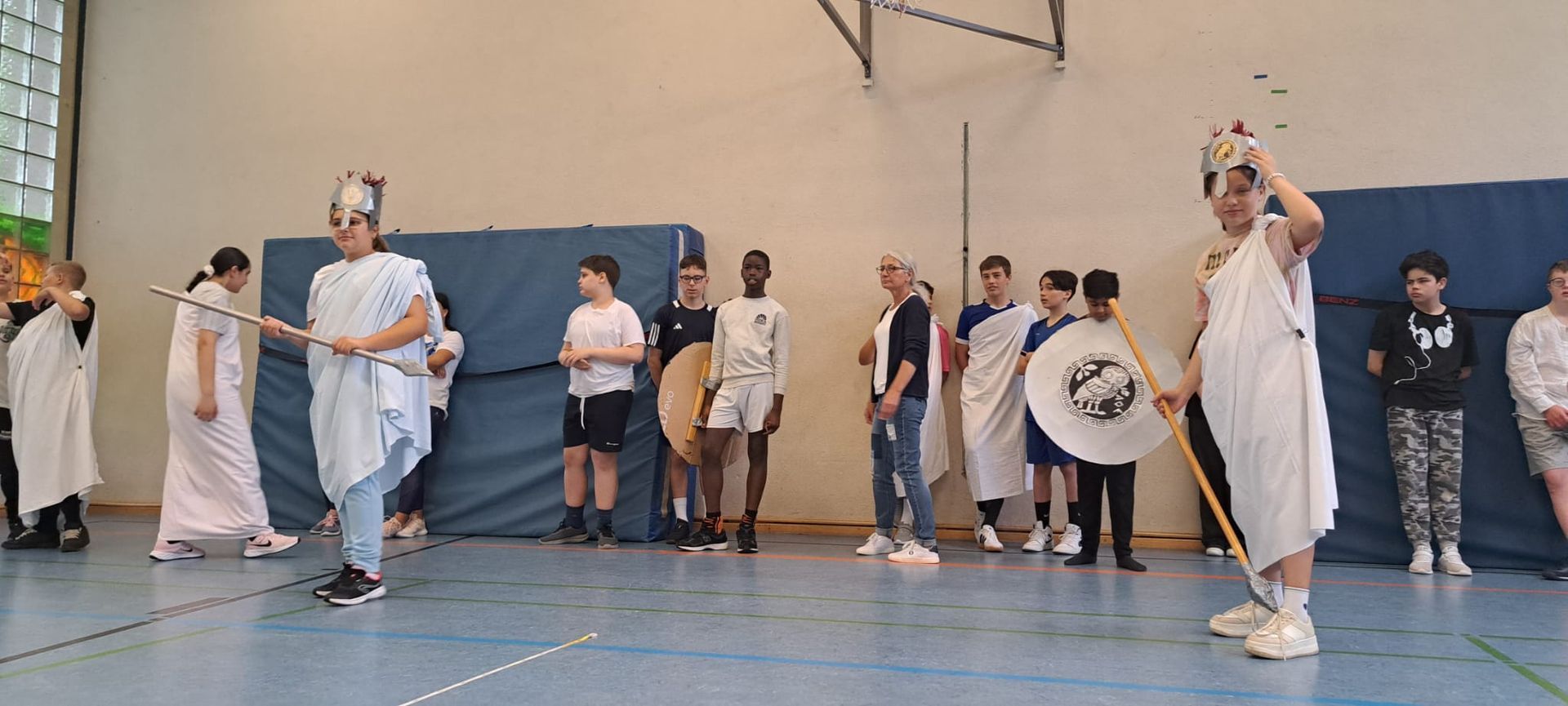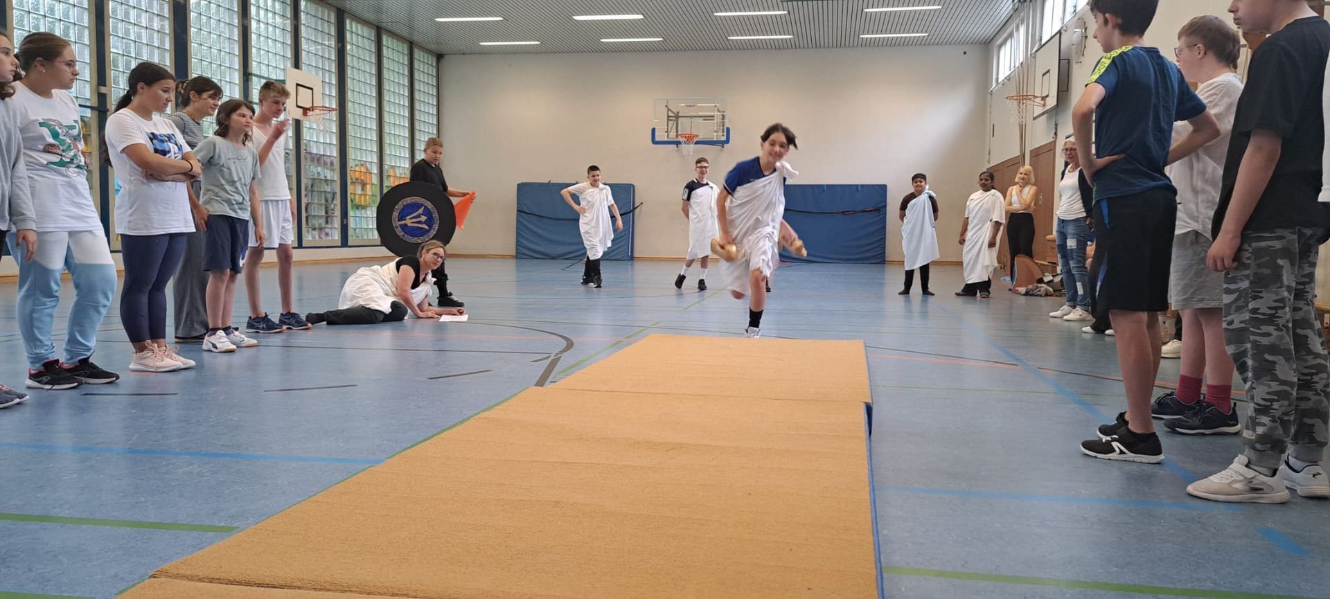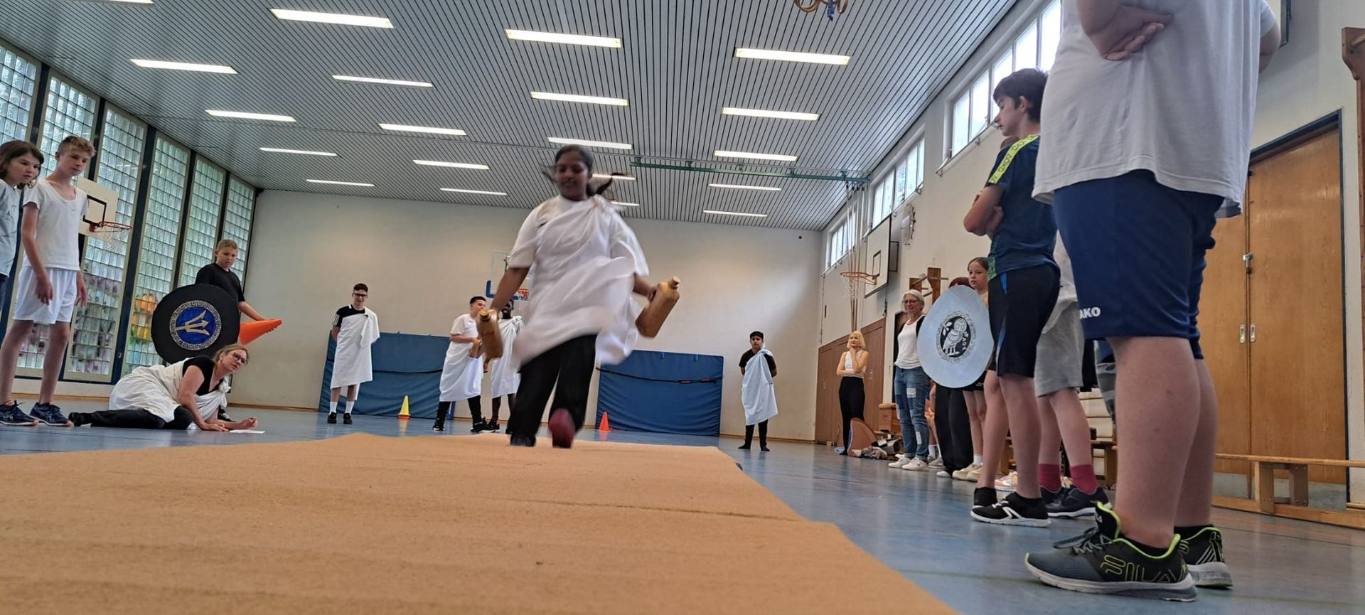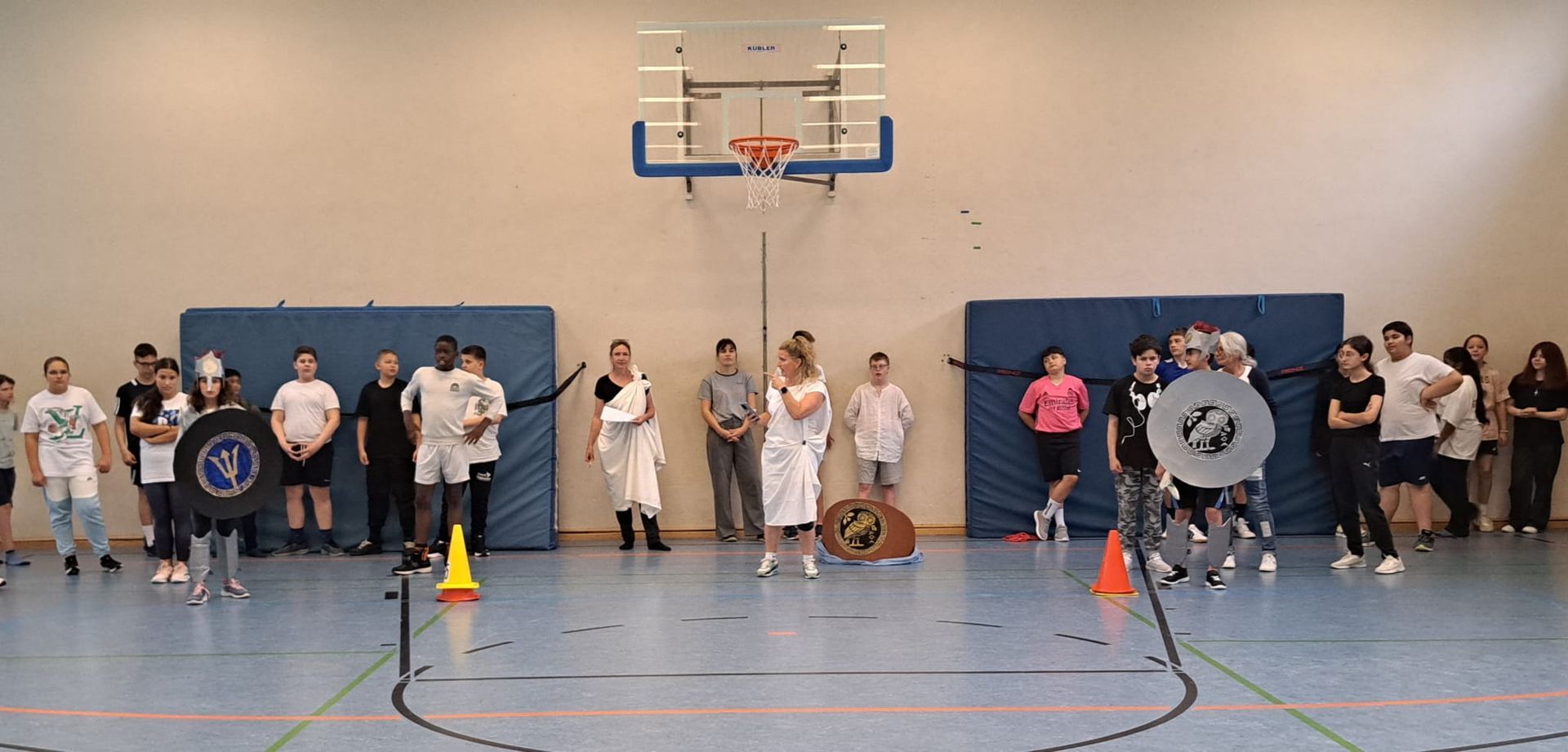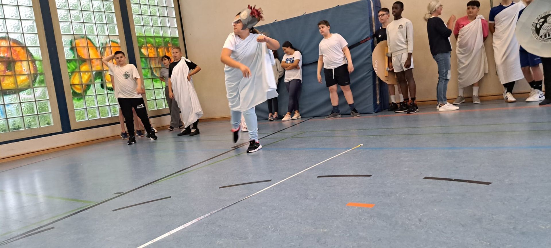 Juni 2024 - Heute, am 21.6.2024 hat die Olympiade begonnen. Für unsere Klasse in Sport bei Frau Skowronek, nicht die in Paris. Und nicht wie heute, sondern so, wie es früher war: mit Pferderennen, Waffenlauf, Weitsprung, Speer- und Diskuswerfen. Team Athen gegen Team Troja. Und natürlich gab es einen Fackellauf, mit echten, brennenden Fackeln. Es war cool!
