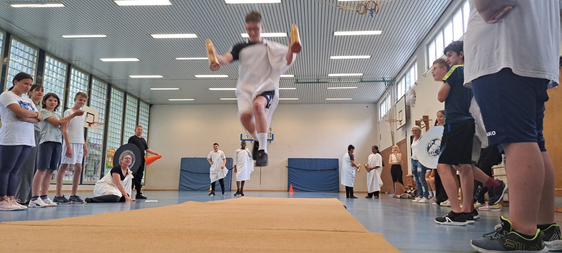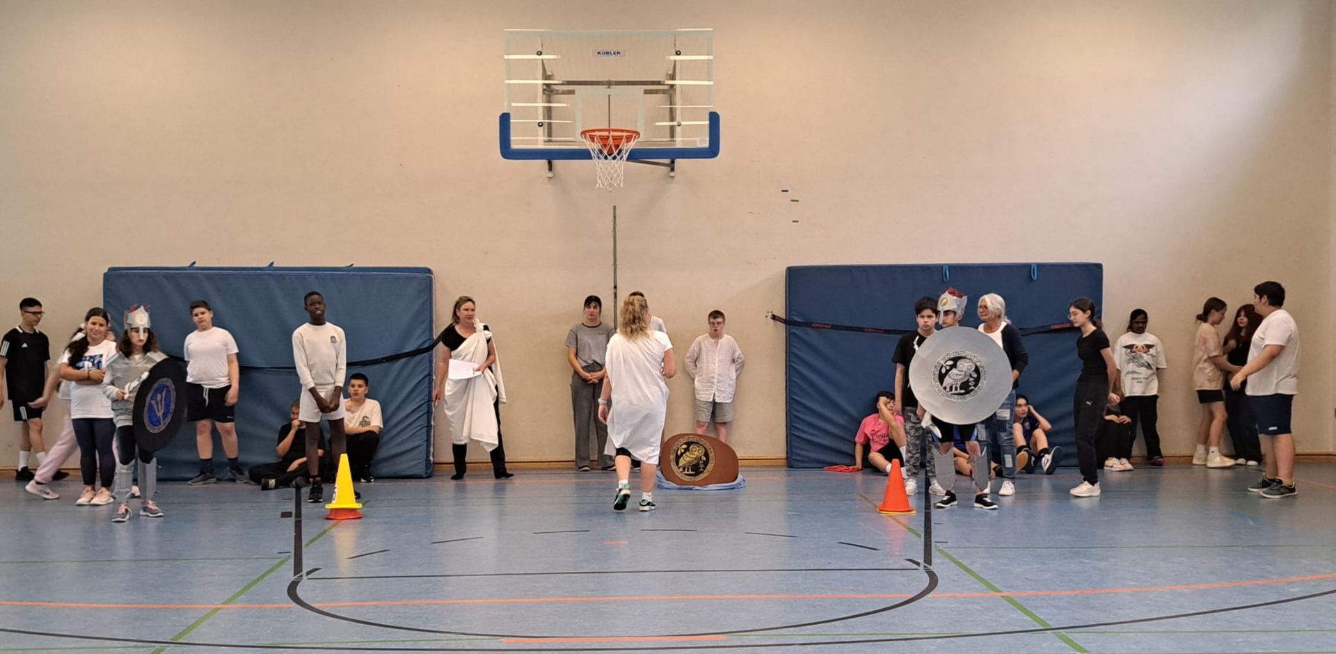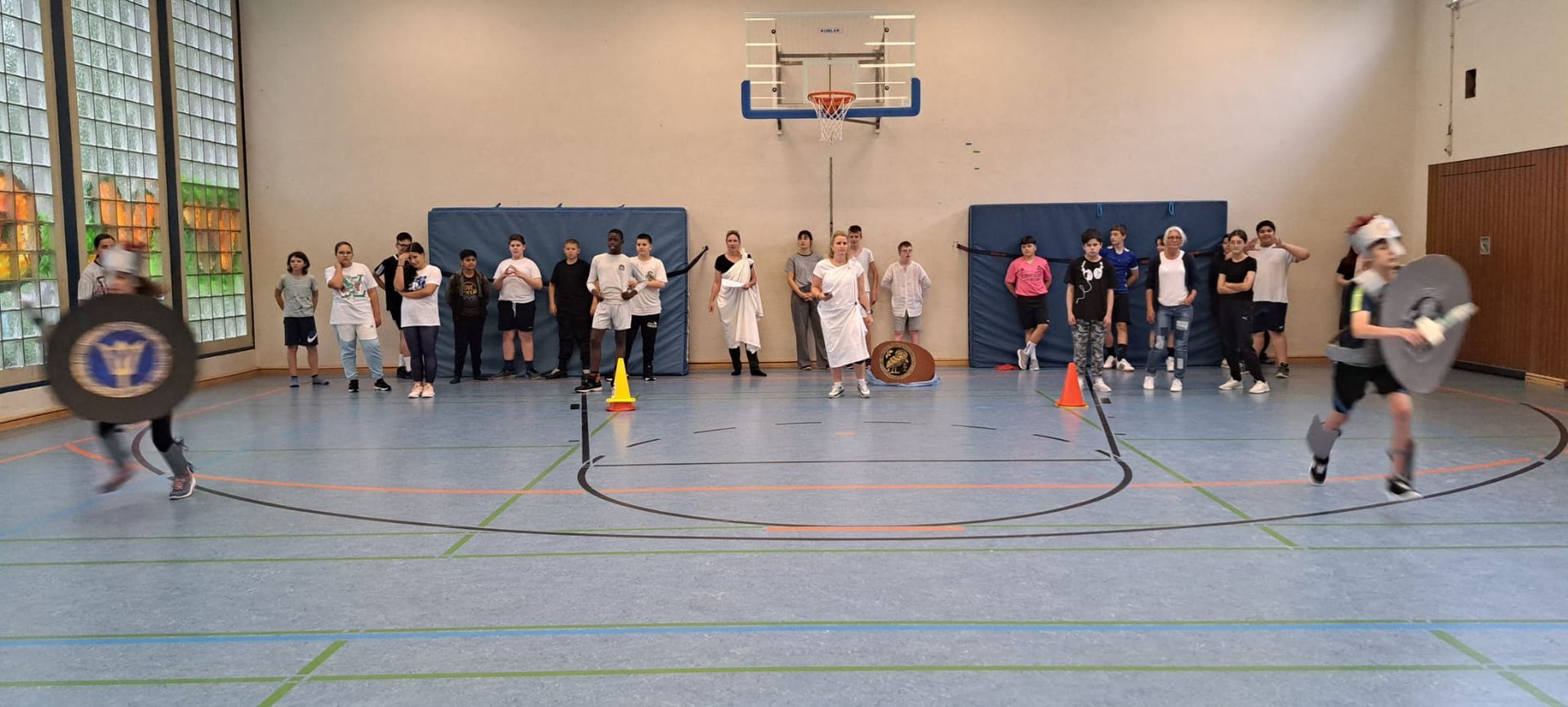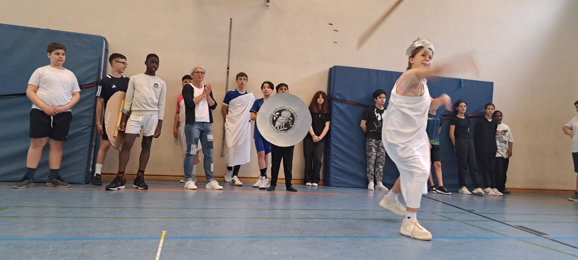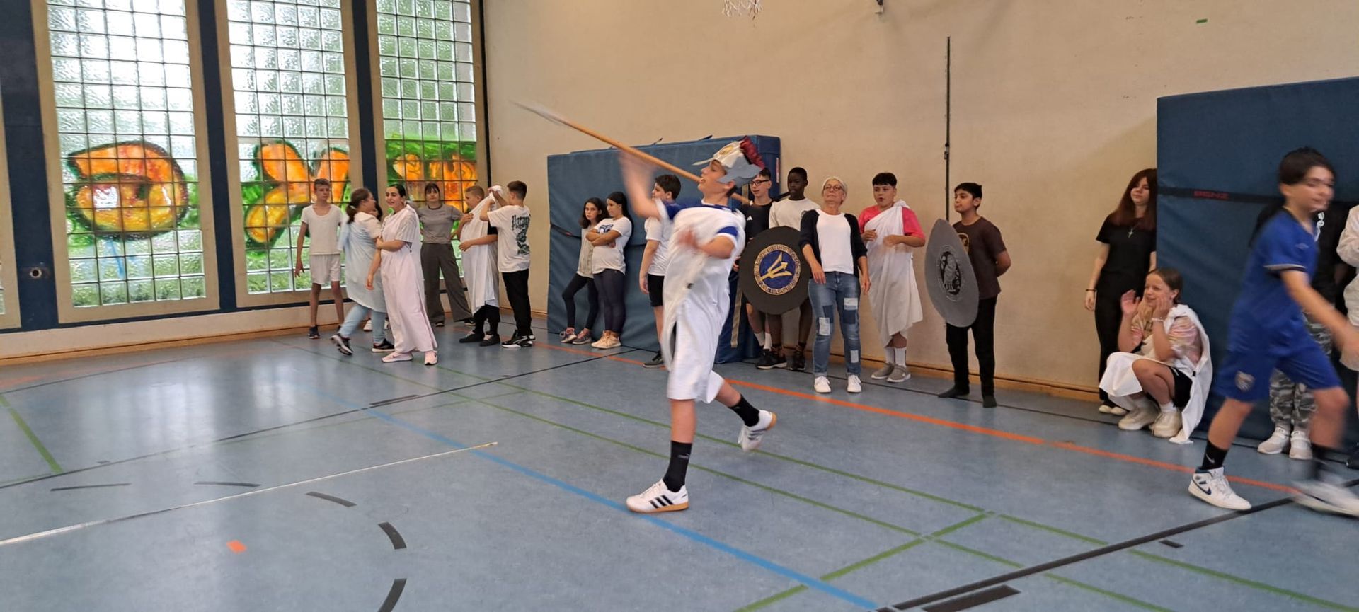 Juni 2024 - Heute, am 21.6.2024 hat die Olympiade begonnen. Für unsere Klasse in Sport bei Frau Skowronek, nicht die in Paris. Und nicht wie heute, sondern so, wie es früher war: mit Pferderennen, Waffenlauf, Weitsprung, Speer- und Diskuswerfen. Team Athen gegen Team Troja. Und natürlich gab es einen Fackellauf, mit echten, brennenden Fackeln. Es war cool!