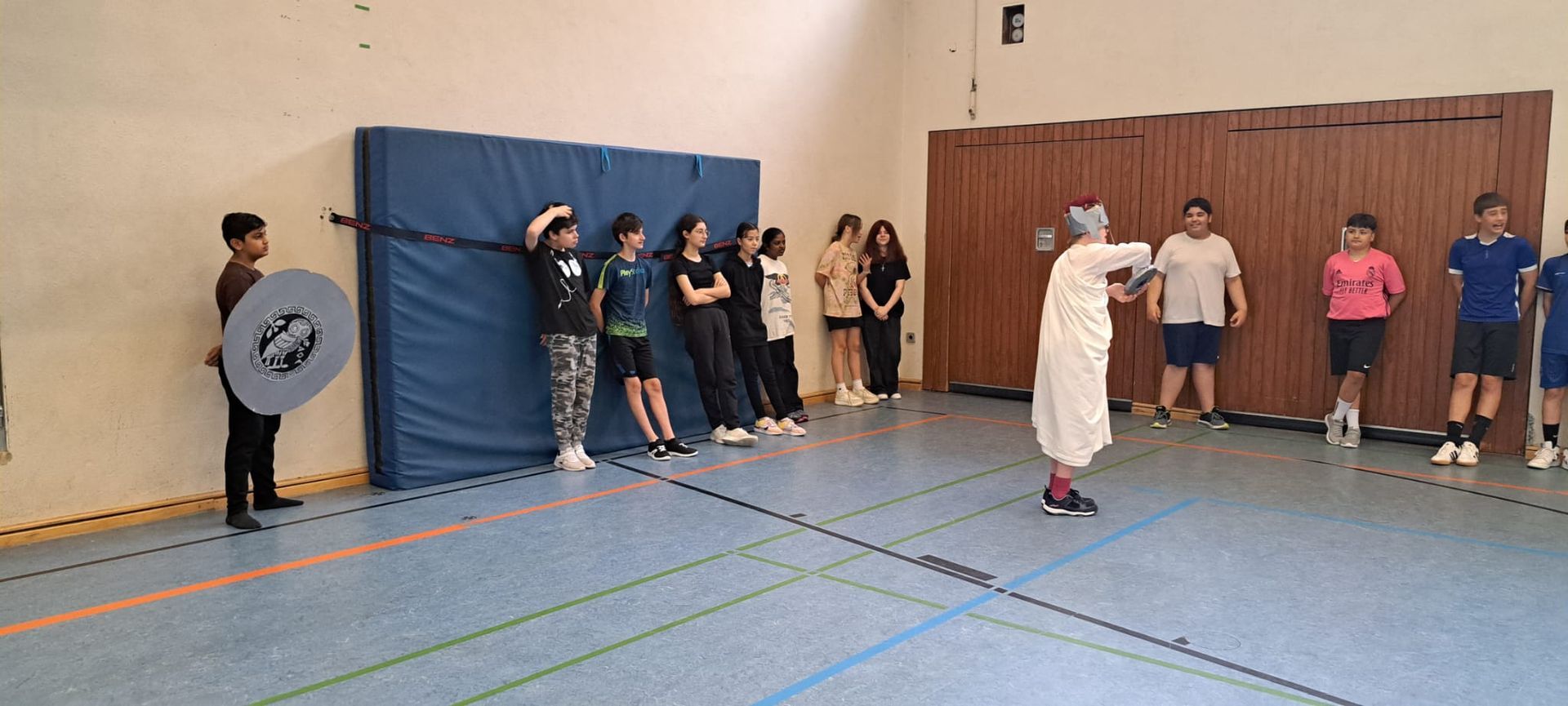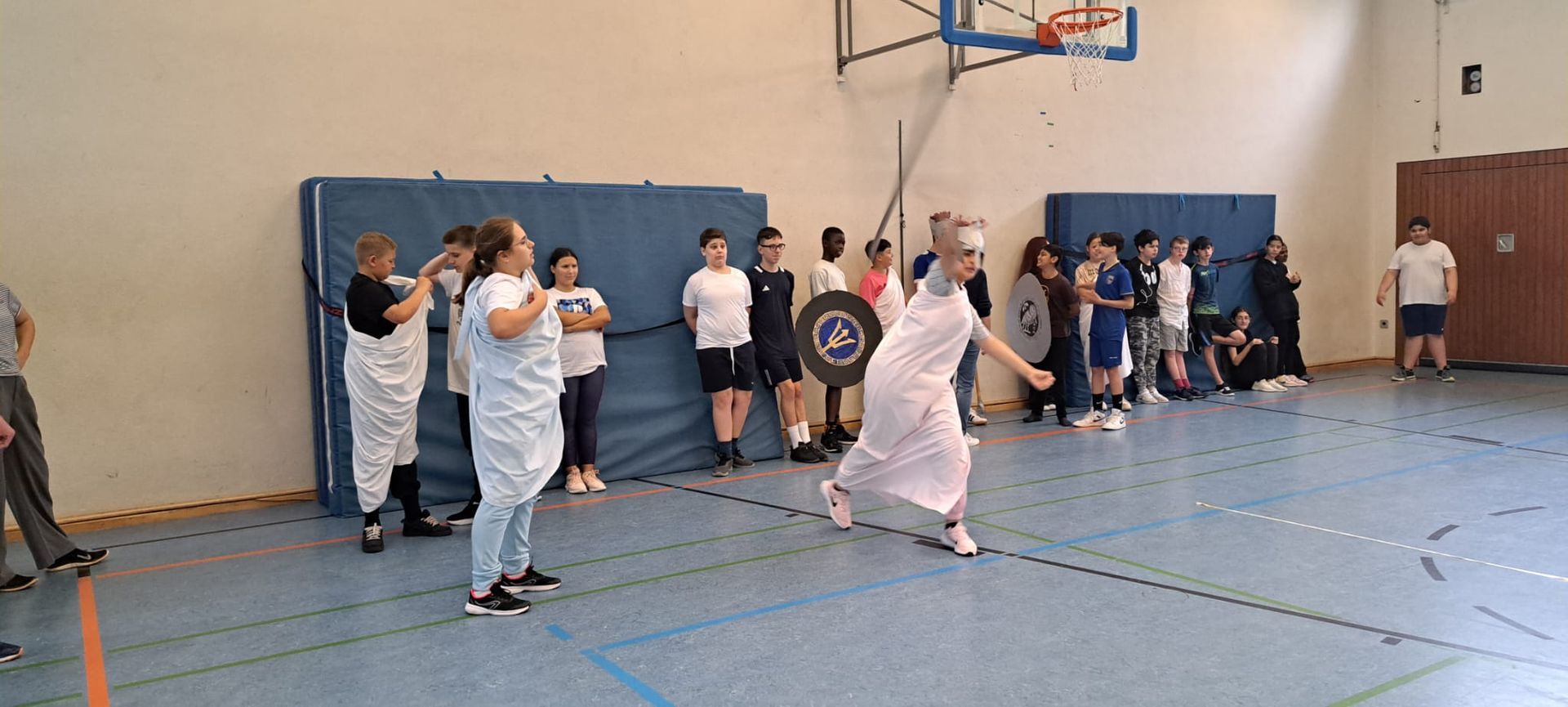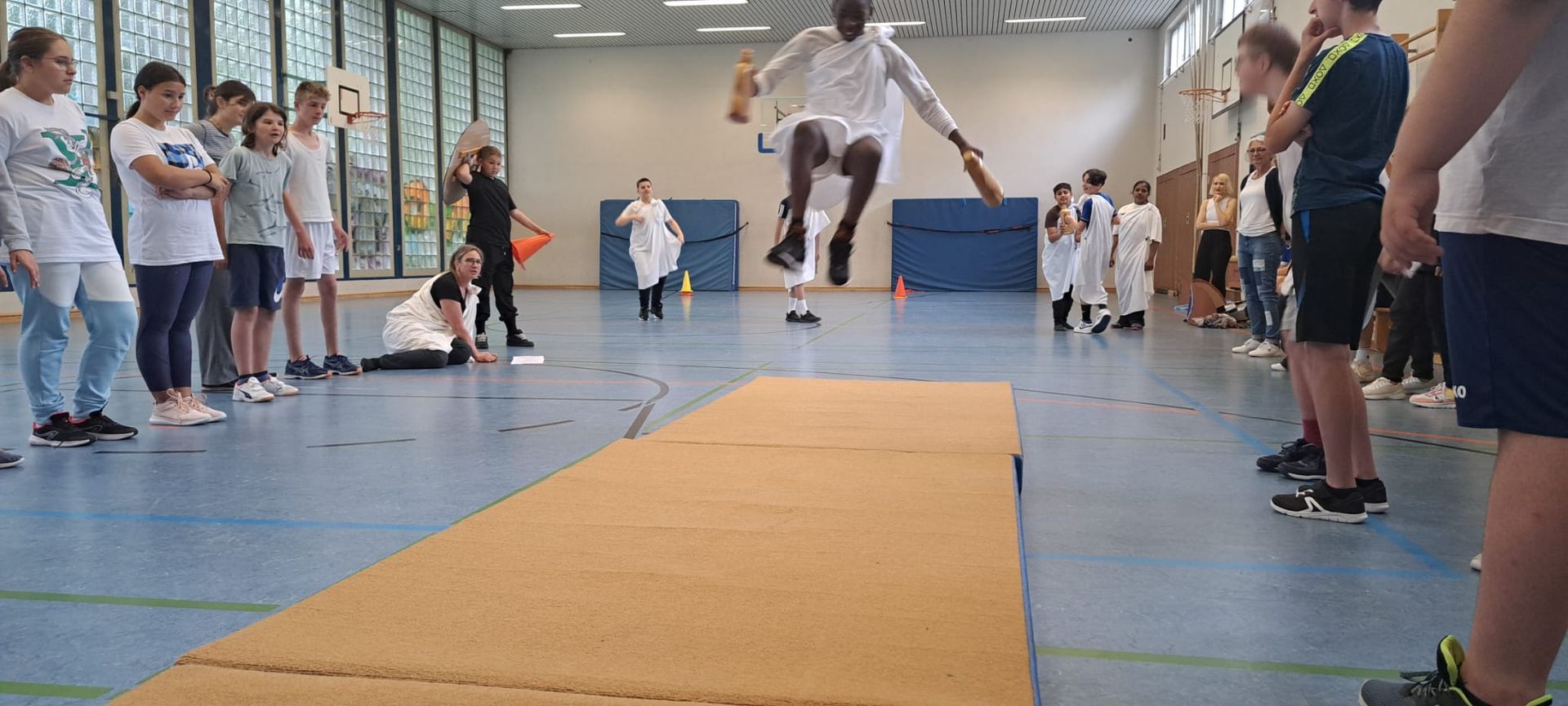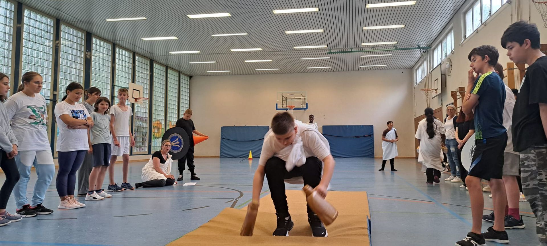 Juni 2024 - Heute, am 21.6.2024 hat die Olympiade begonnen. Für unsere Klasse in Sport bei Frau Skowronek, nicht die in Paris. Und nicht wie heute, sondern so, wie es früher war: mit Pferderennen, Waffenlauf, Weitsprung, Speer- und Diskuswerfen. Team Athen gegen Team Troja. Und natürlich gab es einen Fackellauf, mit echten, brennenden Fackeln. Es war cool!