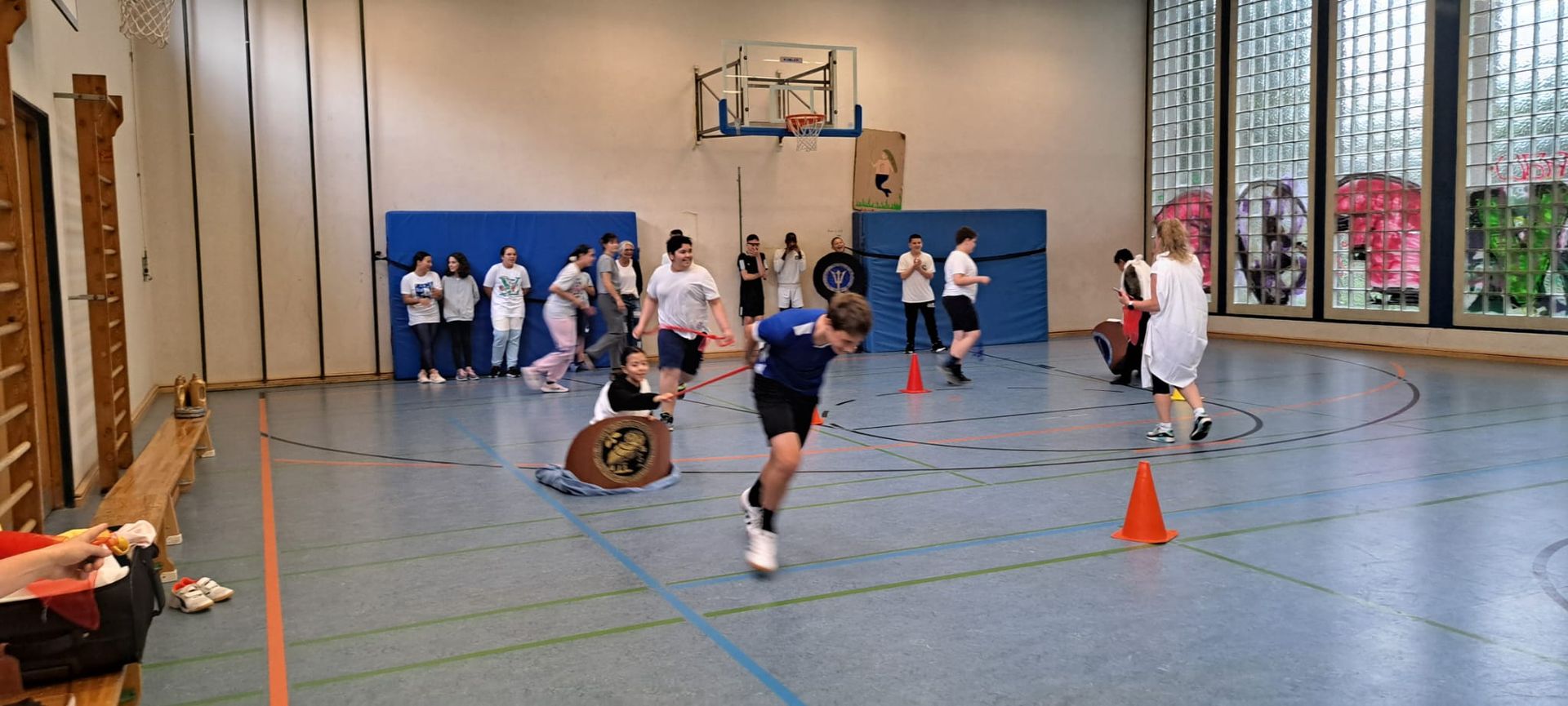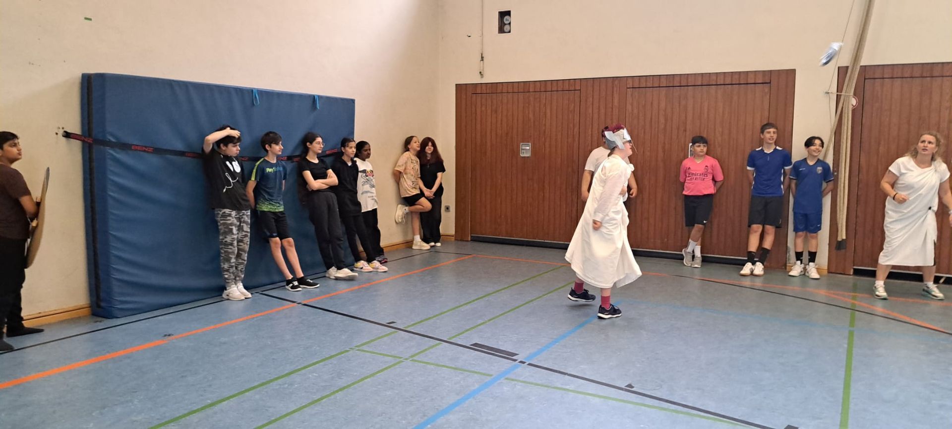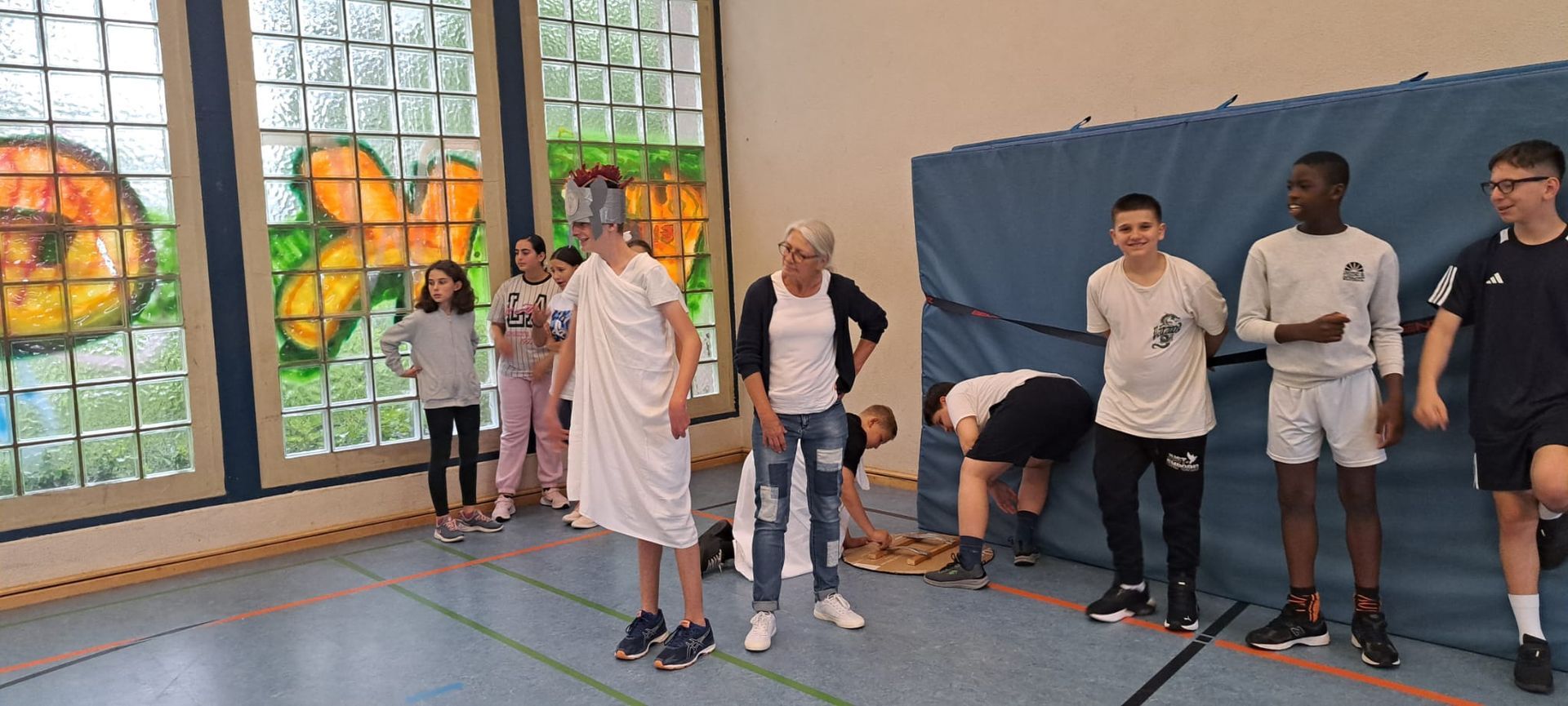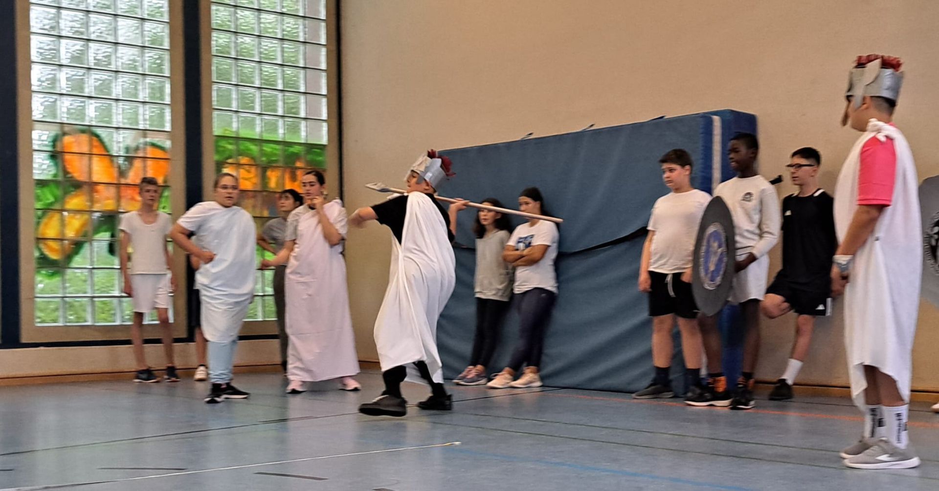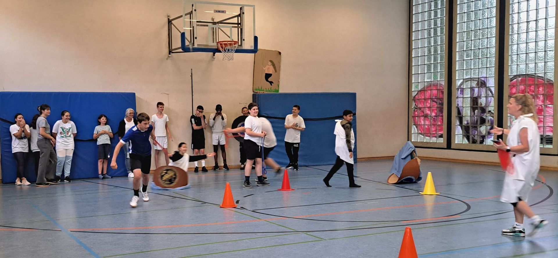 Juni 2024 - Heute, am 21.6.2024 hat die Olympiade begonnen. Für unsere Klasse in Sport bei Frau Skowronek, nicht die in Paris. Und nicht wie heute, sondern so, wie es früher war: mit Pferderennen, Waffenlauf, Weitsprung, Speer- und Diskuswerfen. Team Athen gegen Team Troja. Und natürlich gab es einen Fackellauf, mit echten, brennenden Fackeln. Es war cool!