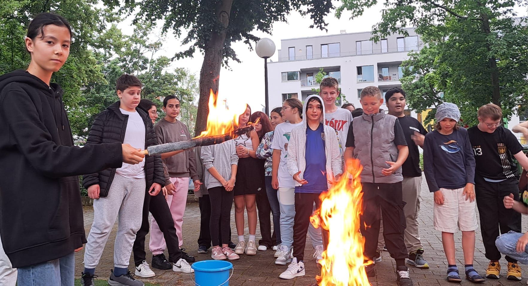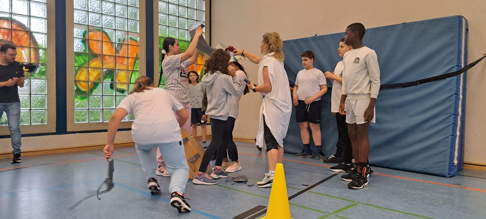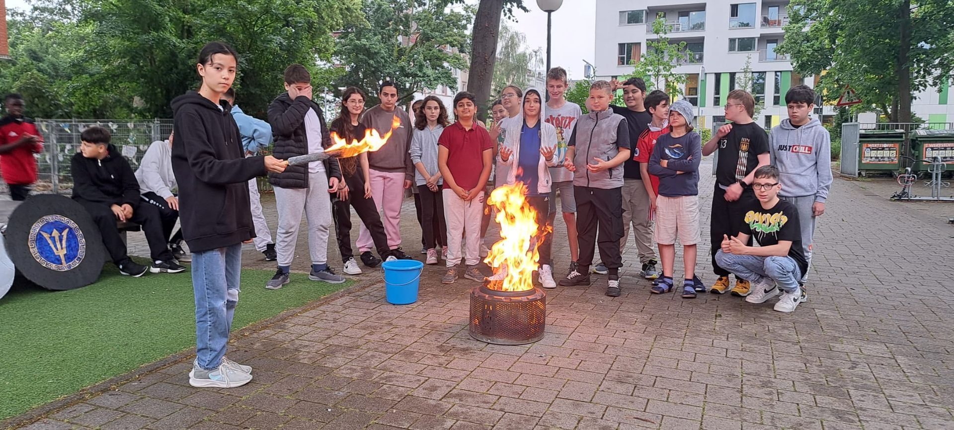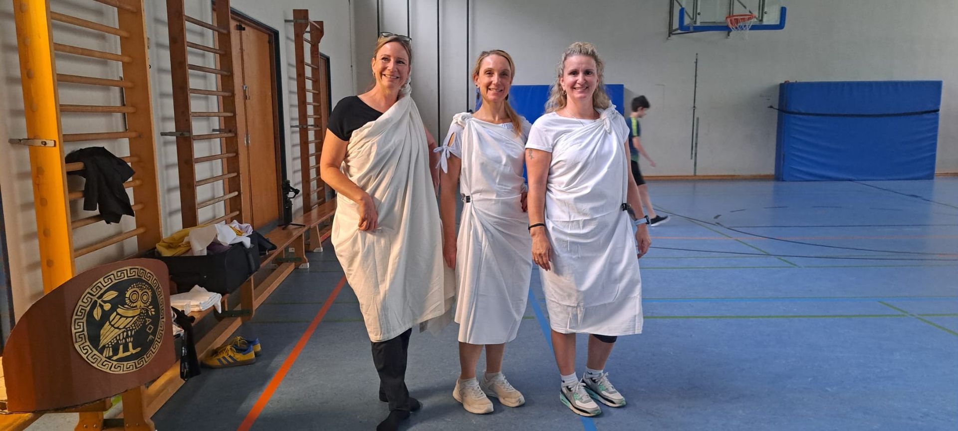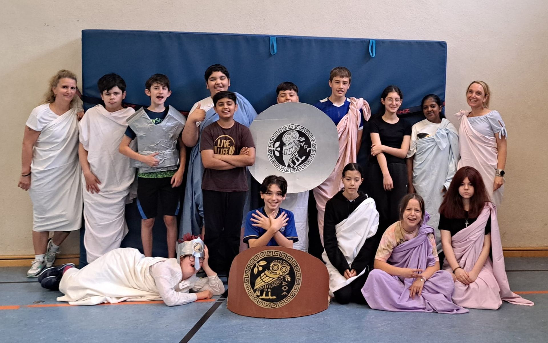 Juni 2024 - Heute, am 21.6.2024 hat die Olympiade begonnen. Für unsere Klasse in Sport bei Frau Skowronek, nicht die in Paris. Und nicht wie heute, sondern so, wie es früher war: mit Pferderennen, Waffenlauf, Weitsprung, Speer- und Diskuswerfen. Team Athen gegen Team Troja. Und natürlich gab es einen Fackellauf, mit echten, brennenden Fackeln. Es war cool!