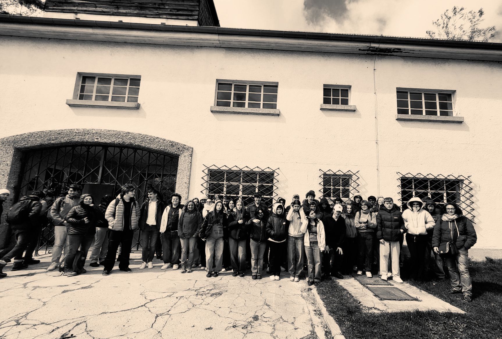 April 2024 - Am 16. April besuchten die 9. und 10. Klassen das Konzentrationslager in Dachau. Bereits am frühen Morgen, um 6 Uhr, ging es los, und wir erreichten die Gedenkstätte rechtzeitig, um uns den Film über die Geschichte des Lagers anzuschauen. Bereits hier erhielten die Schülerinnen und Schüler erste Einblicke über die Grausamkeiten und menschenunwürdigen Verhältnisse, denen die Häftlinge während der Nazizeit ausgesetzt waren.