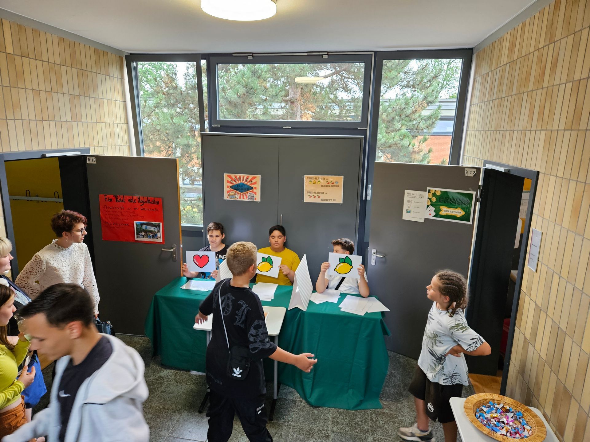 Juli 2024 - Das Schuljahr ist vorbei und es ist eine Menge von den letzten Schultagen zu berichten. Vom 18. bis zum 22. Juli fanden die beliebten Projekttage statt. Egal ob Tennis, Greenbowl-Projekt, Sportabzeichen, Luftartistik, Naturkosmetik selbst herstellen, mit dem Deutschlandticket auf Erkundungstour, Apps programmieren, Fitness, Minigolf, Landart, Kunst aus Beton und einige weitere Projekte – für alle war etwas dabei.
