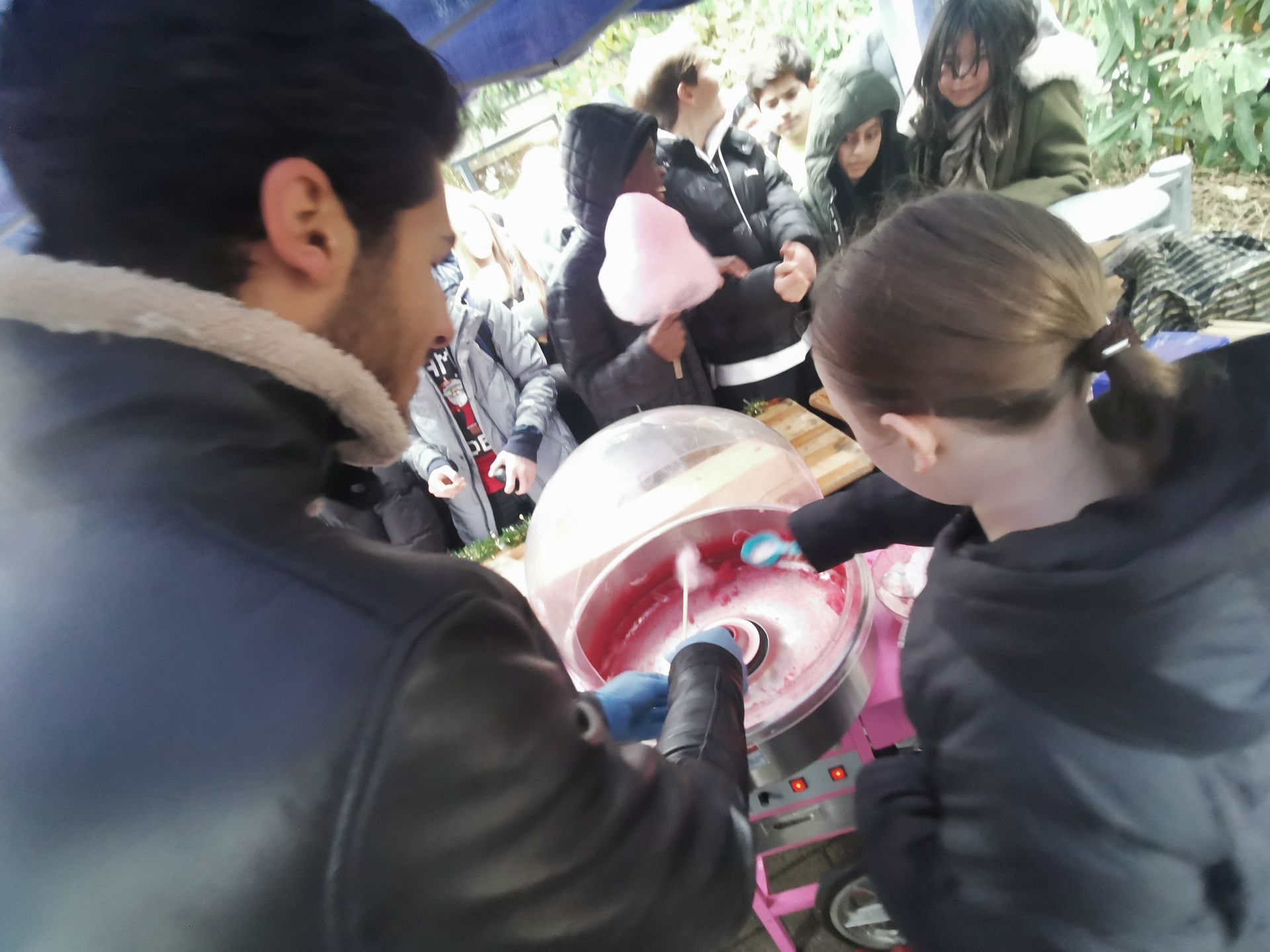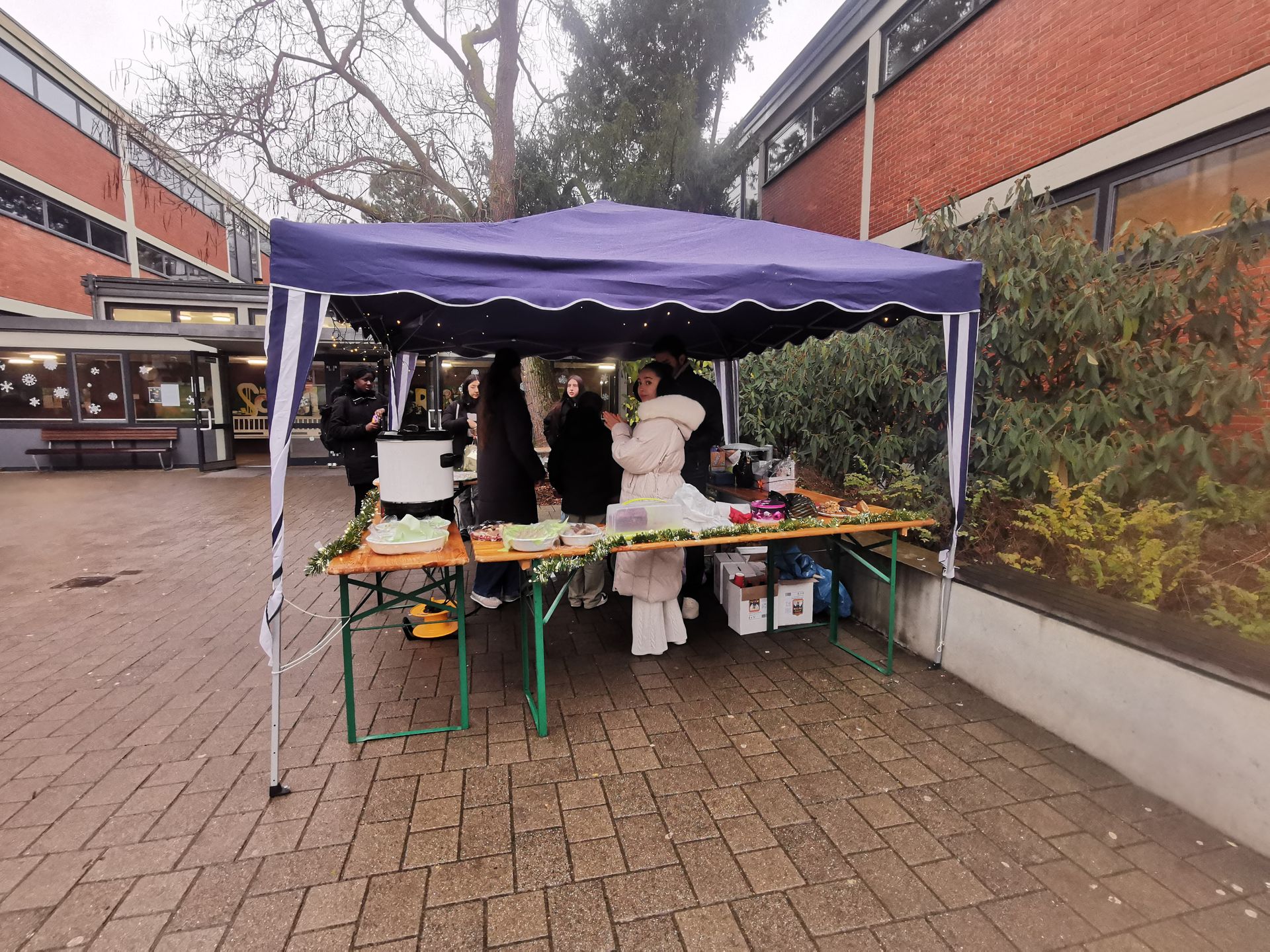 Mit einem Winterfest für die ganze Schule organisierte die SMV die letzte Stunde vor den Ferien. Es gab Musik, leckeren warmen Punsch und Plätzchen für alle! Das Highlight war dieses Jahr außerdem eine Zuckerwattemaschine. Es gingen beinahe 100 Zuckerwatten über die Theke!