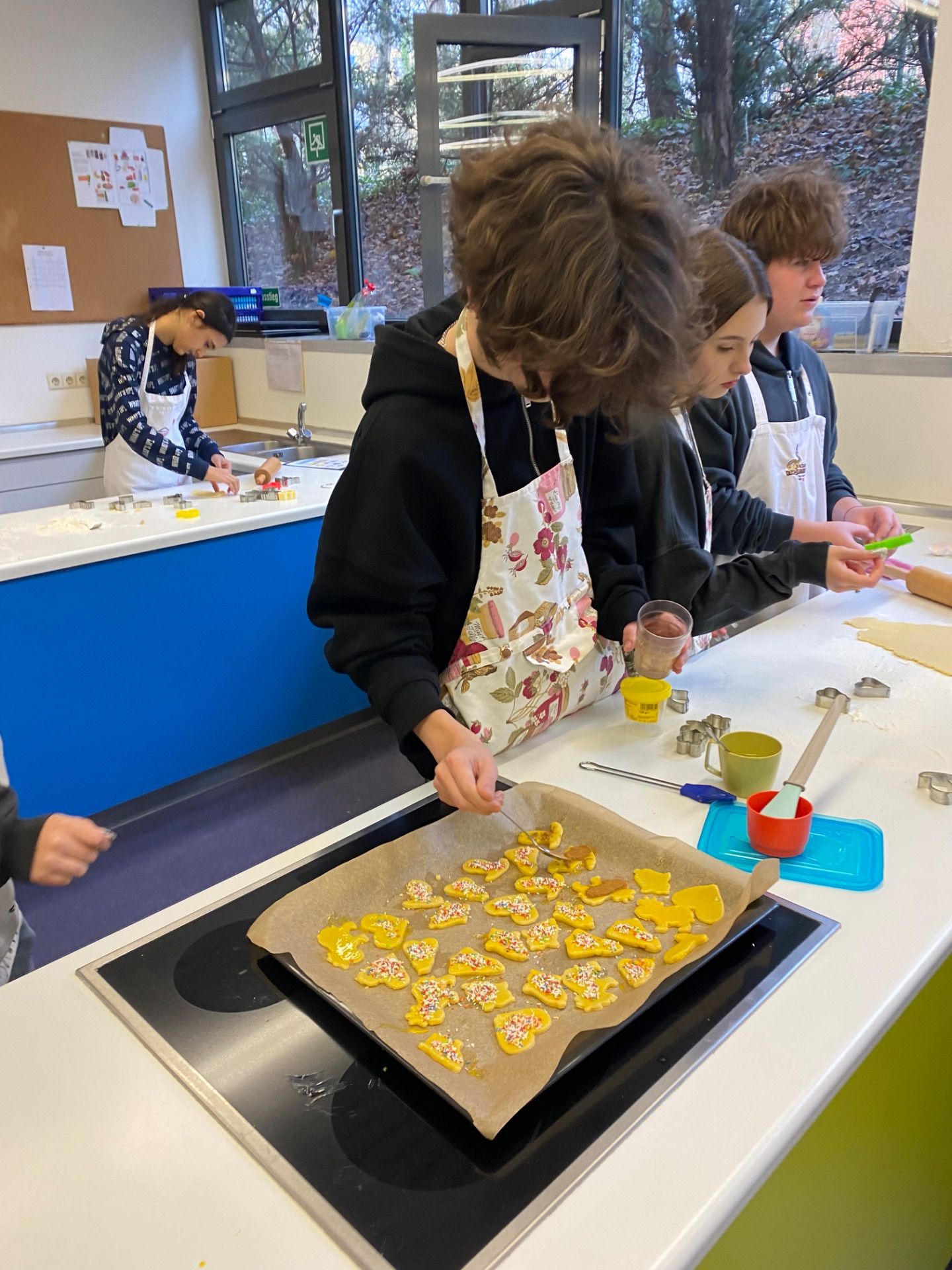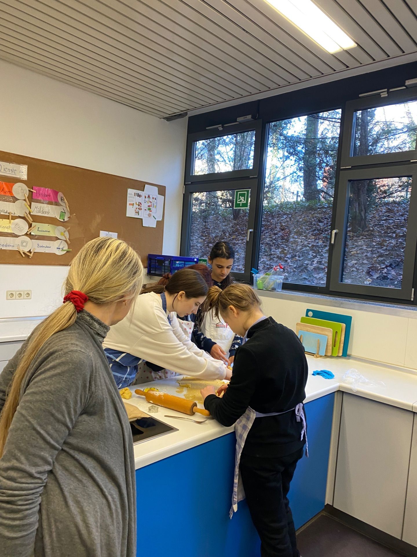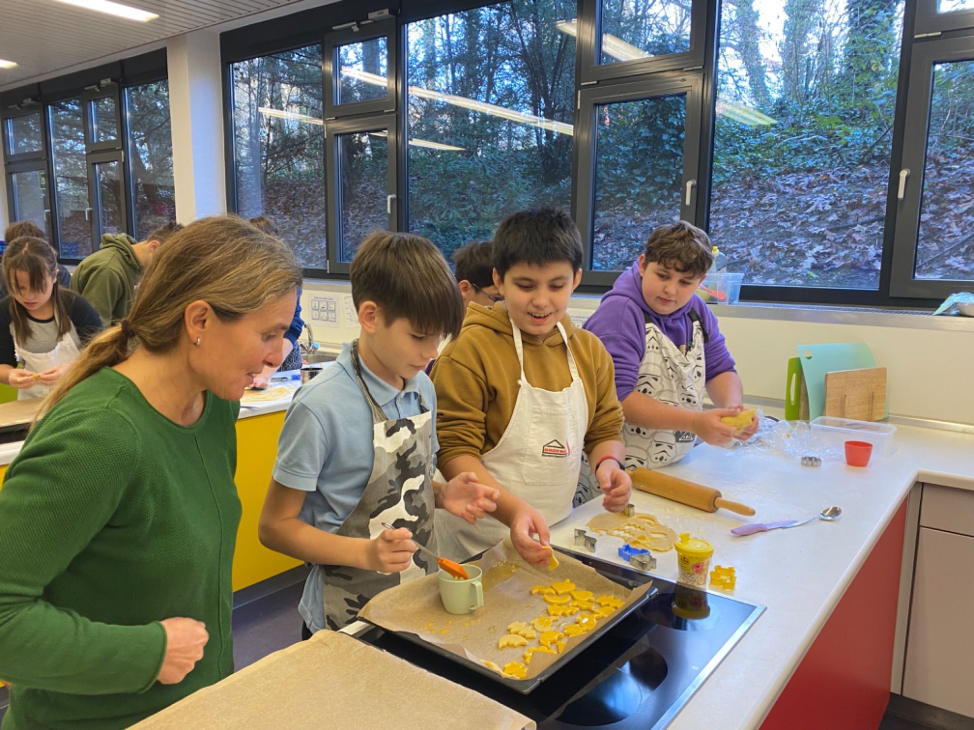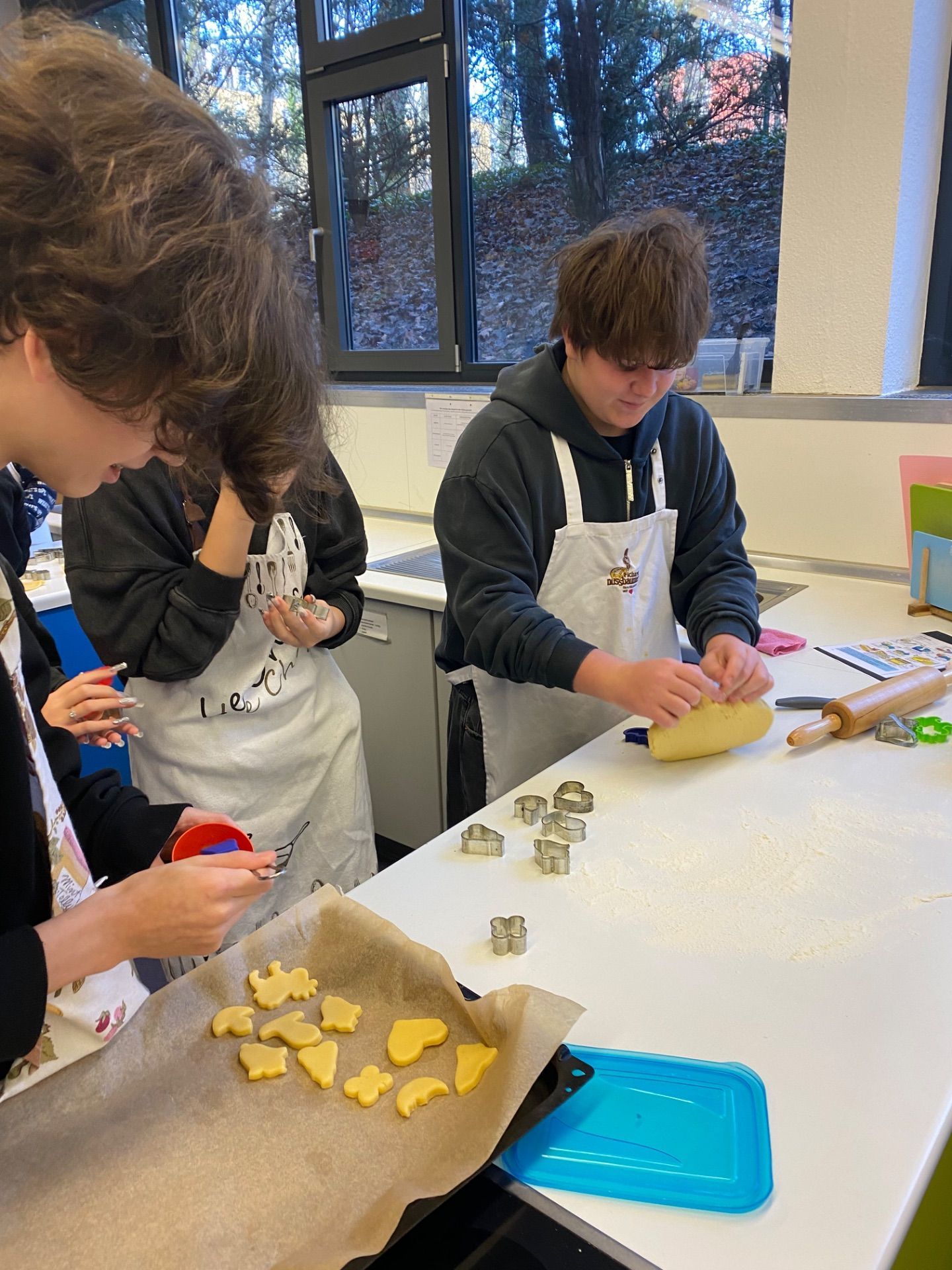 Dezember 2023 - In der letzten Woche vor Weihnachten gingen wir zusammen mit Frau Weberbauer und Frau Schevchenko in die Schulküche, um nach deutschem Rezept Plätzchen zu backen.