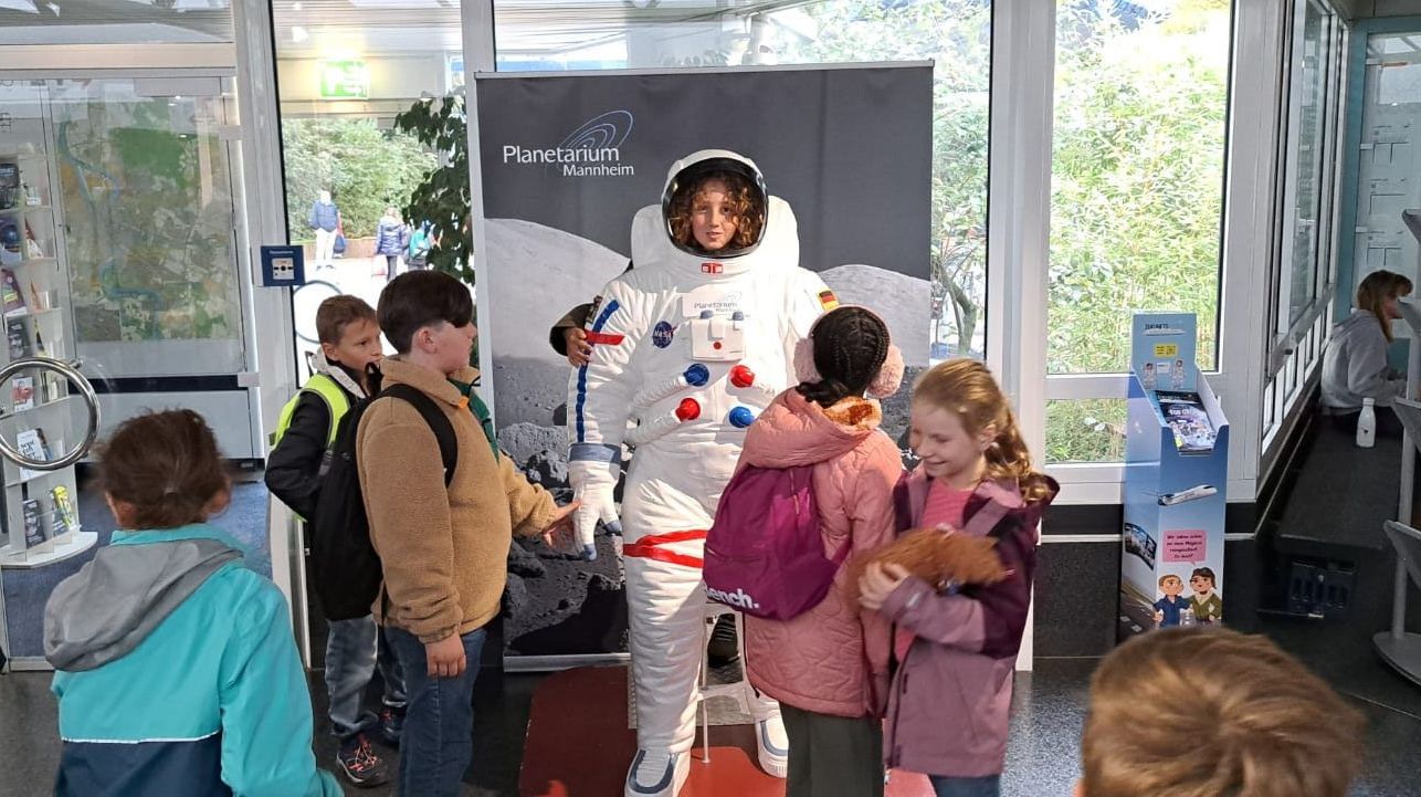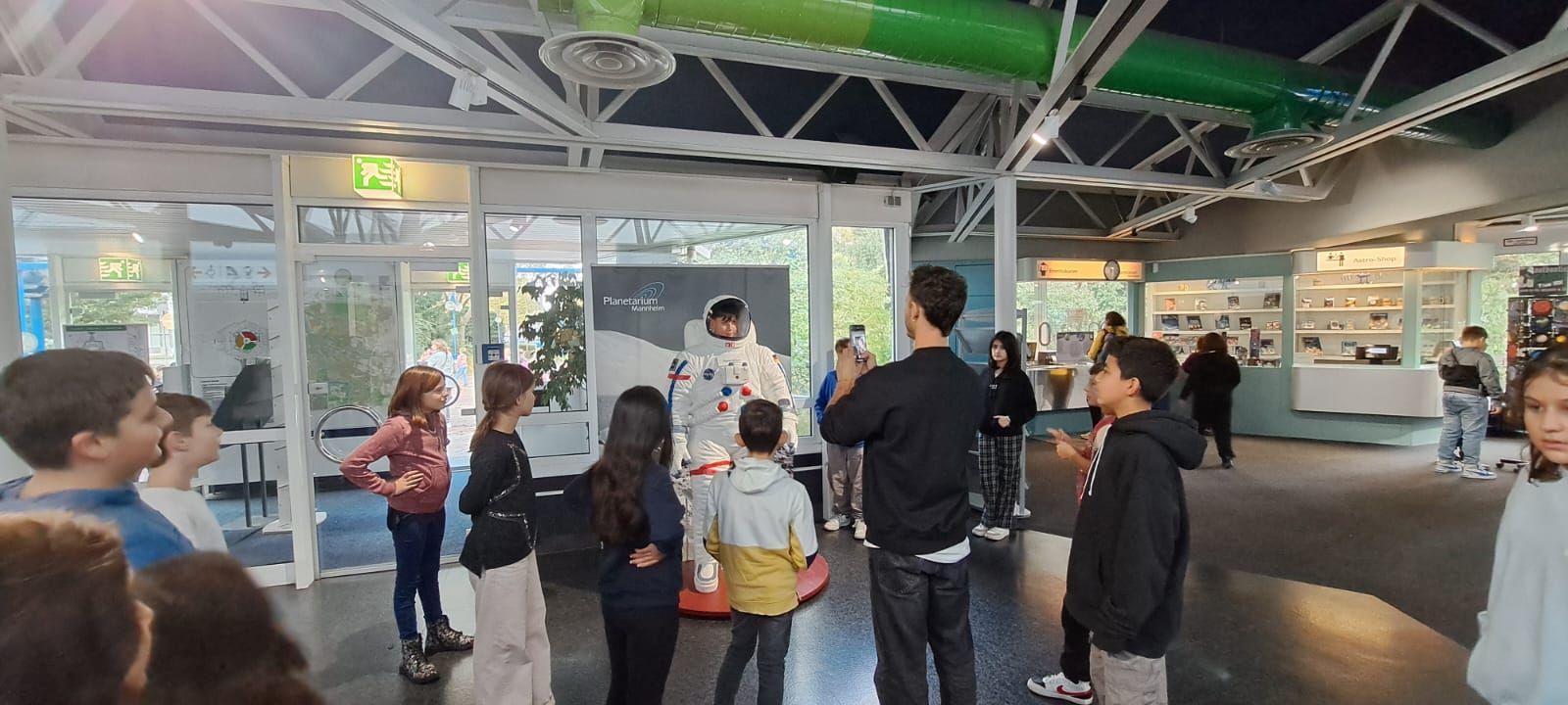 März 2025 - Unser erster großer Ausflug mit den 5. Klassen hat uns ins Planetarium Mannheim geführt. Nach einer lustigen Zugfahrt und einem kurzen Spaziergang durch die Stadt, waren wir schon am Ziel und haben uns gemeinsam in den gemütlichen Liegesesseln die Vorführung "Das kleine 1x1 der Sterne und Planeten" angesehen.