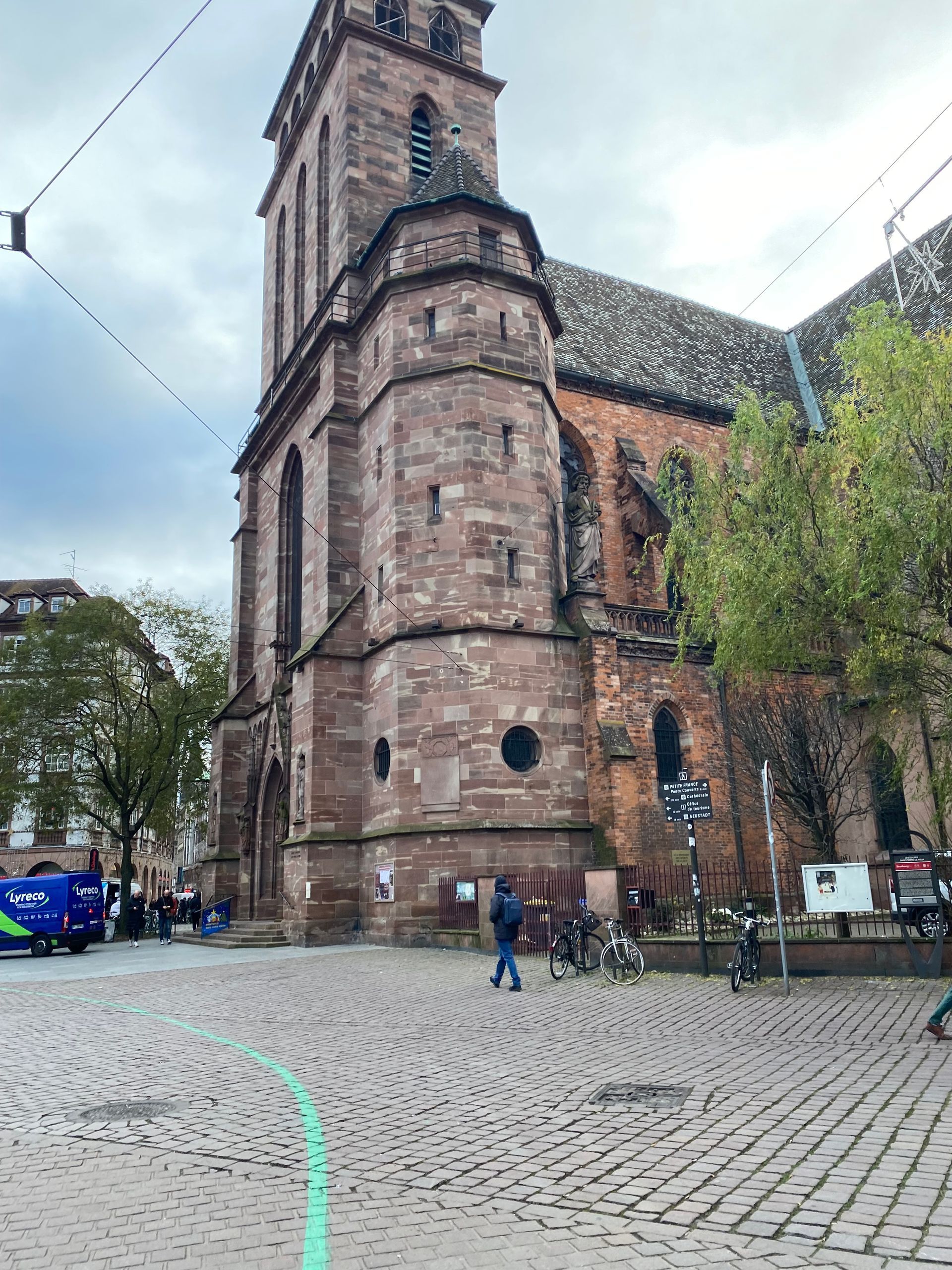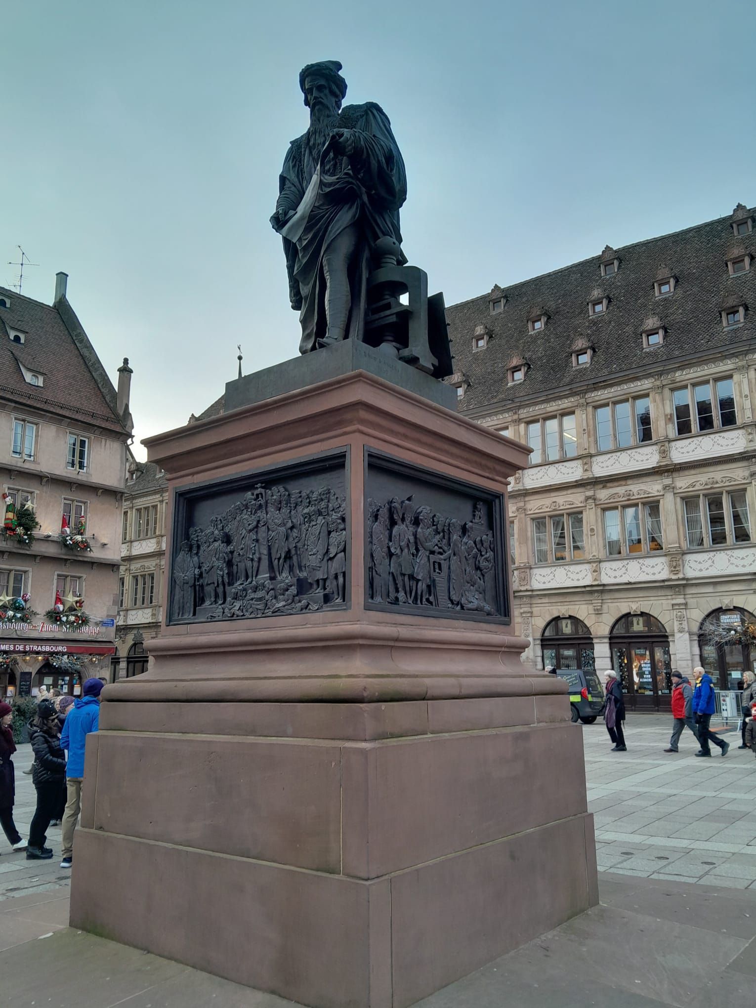Unsere erste Station war der riesige Weihnachtsbaum auf der Place Kléber. Hier gab es auch bereits den ersten Weihnachtsmarkt zu sehen, aber die Buden waren noch geschlossen.