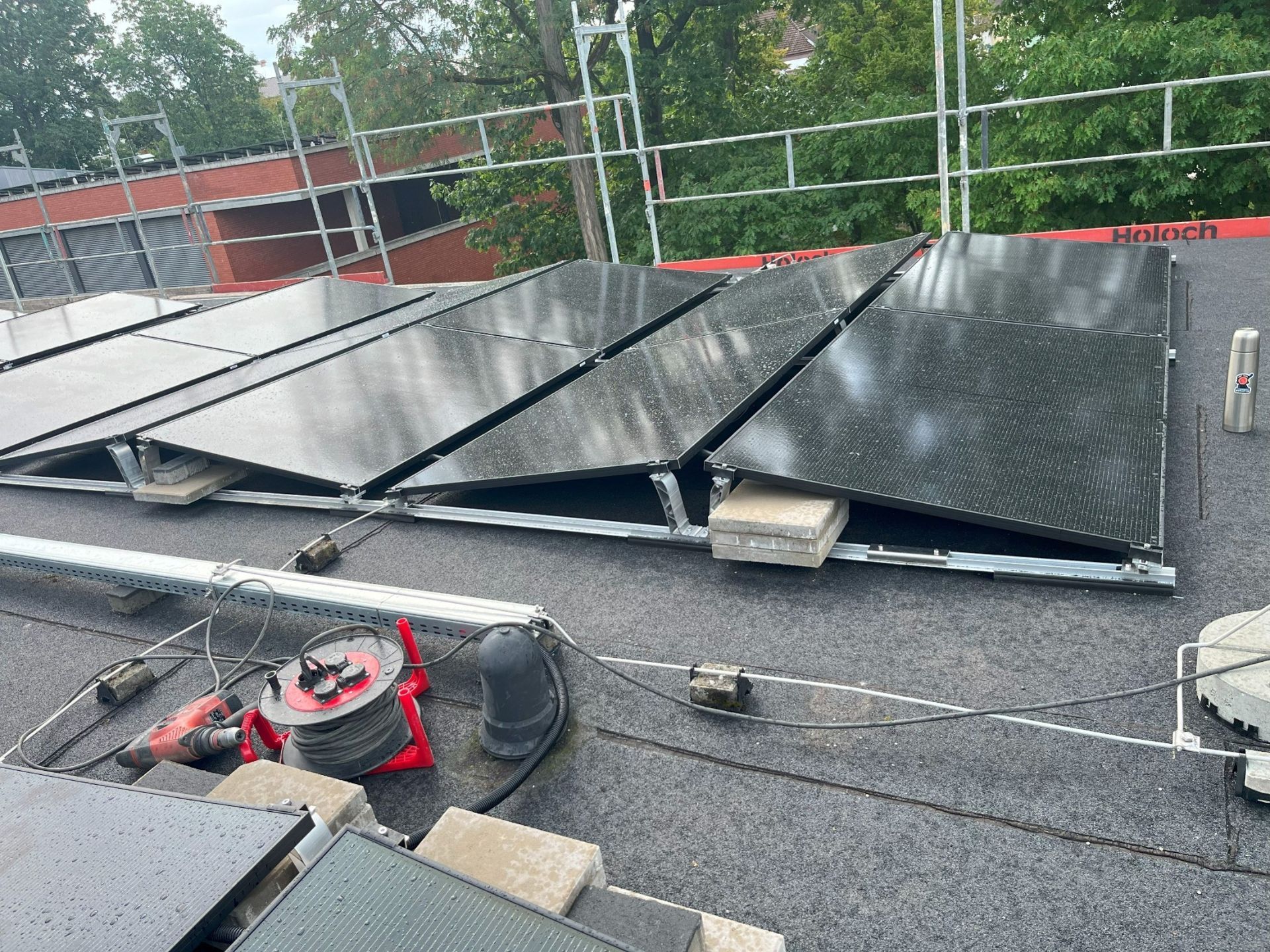September 2025 - In den Sommerferien wurde auf dem Dach der Hebel ordentlich gewerkelt. Unsere Solaranlage wurde erweitert.