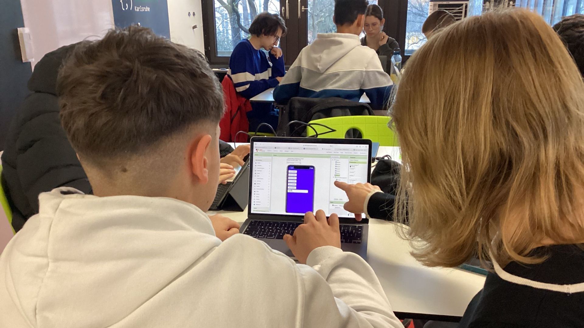 Januar 2025 - Im Hackathon Apps programmieren. Die Informatiker*innen der Klassen 9 und 10 nehmen an einem Workshop der Pädagogischen Hochschule Karlsruhe teil.