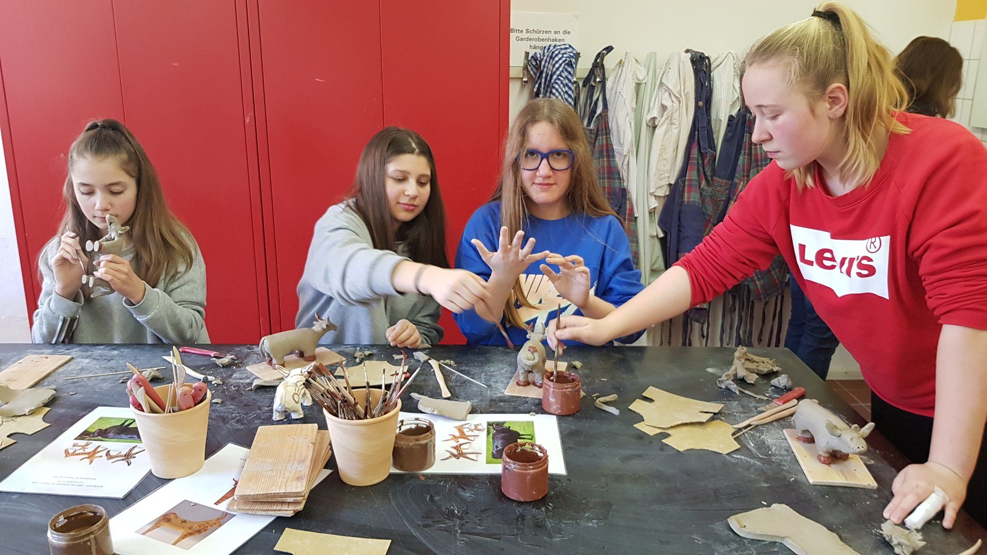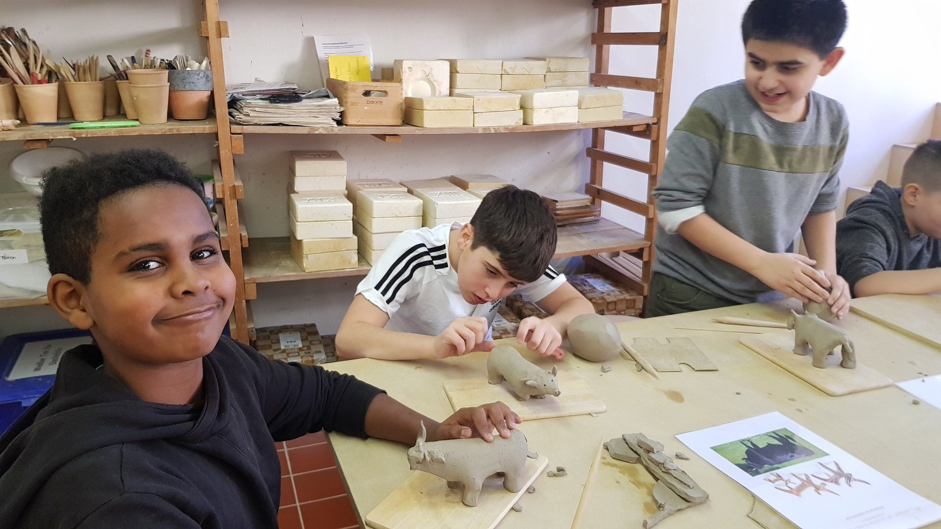 Im Anschluss an die Führung durfte die Klasse selbst künstlerisch aktiv werden. Im Museum der Majolika Manufaktur gestalteten die SchülerInnen kleine Tonstiere nach antikem Vorbild, die mit Mustern bemalt wurden und nun auf den Brennofen warten. Es war ein toller Ausflug, der uns allen viel Spaß gemacht hat.