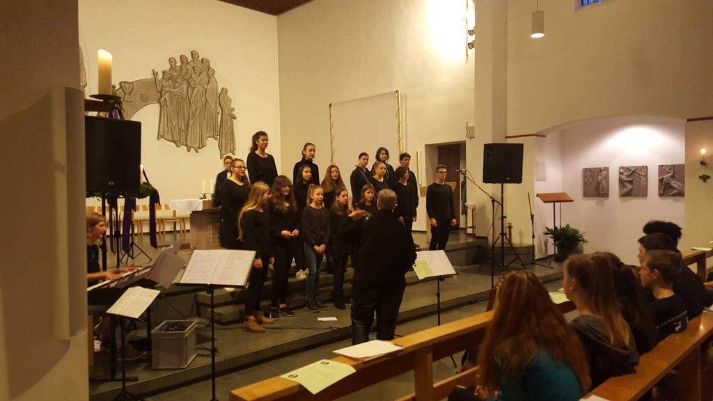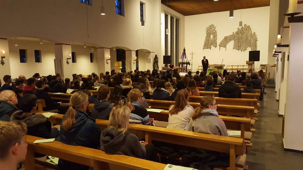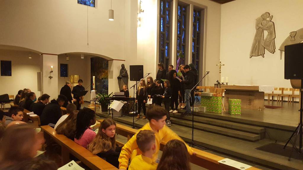 Dezember 2018 - In der Herz-Jesu-Kirche wurde auch in diesem Jahr am letzten Schultag des Jahres 2018 ein Schulgottesdienst gefeiert. Pfarrerin Hug, der Hebelchor und einige Religionsklassen der Hebel-Realschule gestalteten einen schönen Gottesdienst, der zum Nachdenken, Innehalten und Mitsingen anregte. Es war ein rundum gelungener Start in die Weihnachtsferienzeit. Es folgen einige Eindrücke.