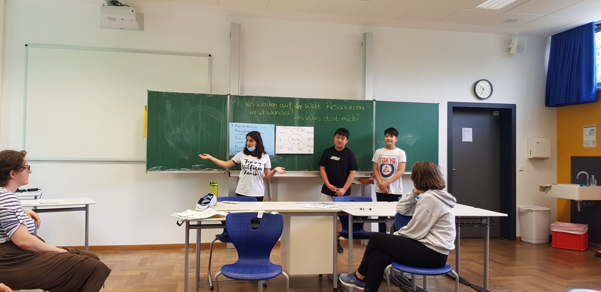 Nun setzt sich die Gruppe dafür ein, unnötige Schulmaterialien einzusparen. Statt unzähliger einzelner Hefte mit Plastikumschlägen und Plastikschnellhefter, wünschen sich die Schüler einen einzigen Ordner für ihre Aufschriebe und Arbeitsblätter. Das Ziel soll am besten für die ganze Schule umgesetzt werden. "Dann müssen wir auch weniger schleppen.", freut sich die Klasse. Mit Plakaten und Infozetteln wollen sie nun alle Schüler und Lehrer der Hebel-Realschule für ihre Idee gewinnen.
