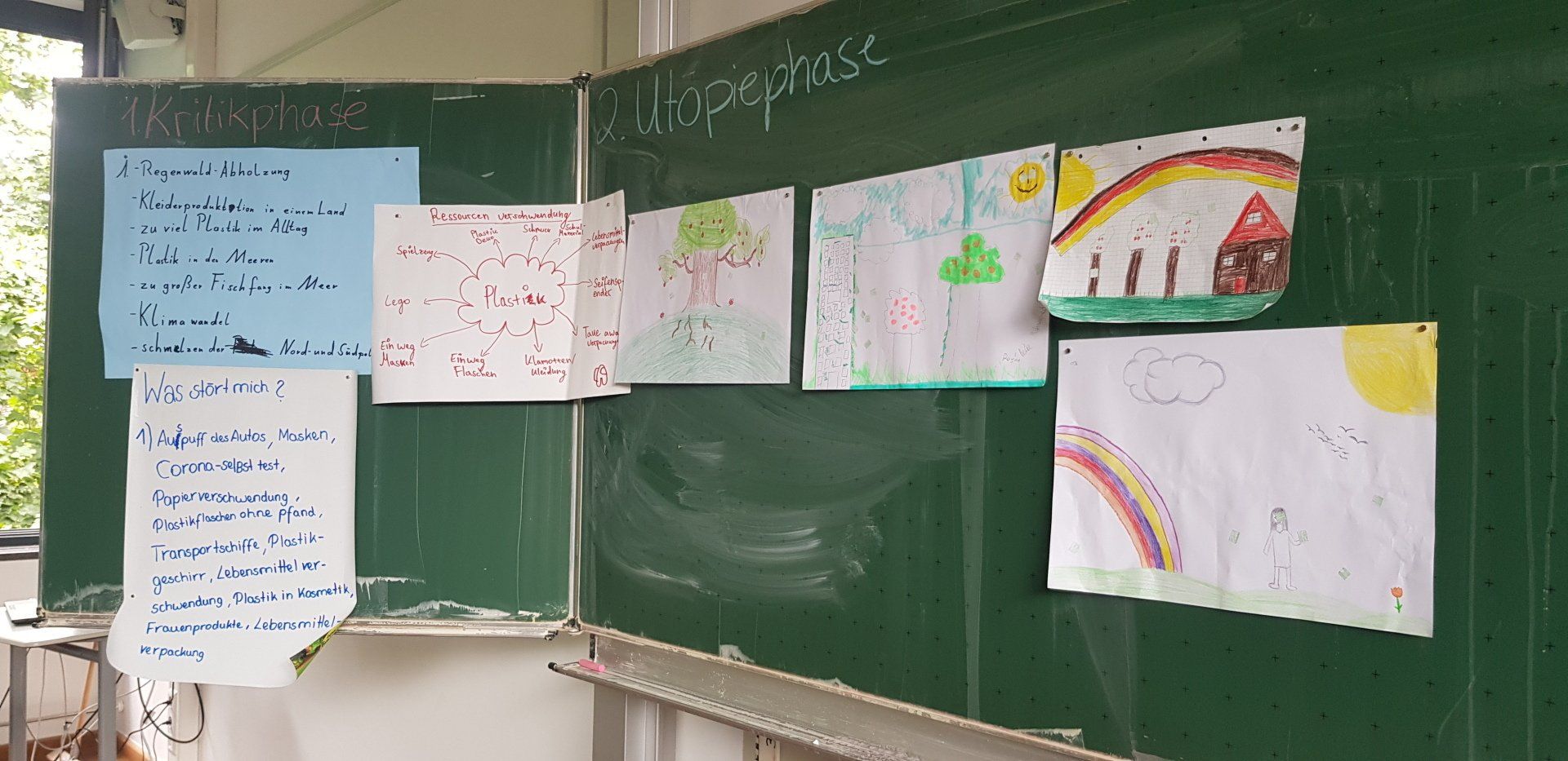 Wie jeder einzelne mit verantwortlich ist, wie die Welt von morgen aussehen könnte, darüber haben die Schüler nachgedacht und eigene Ideen entwickelt. Begrünte Hochhäuser, viele Bäume, natürliche Lebensmittel, Leben im Einklang mit der Natur: das sind die Wünsche der Schüler für eine bessere Zukunft. Dafür würden sie auch selbst aktiv werden. "Ich werde das Licht ausschalten, wenn ich aus dem Zimmer gehe.", Ich will weniger Fleisch essen." "Ich möchte fair trade Kleidung kaufen.", äußerten die Schüler innerhalb der Zukunftswerkstatt.