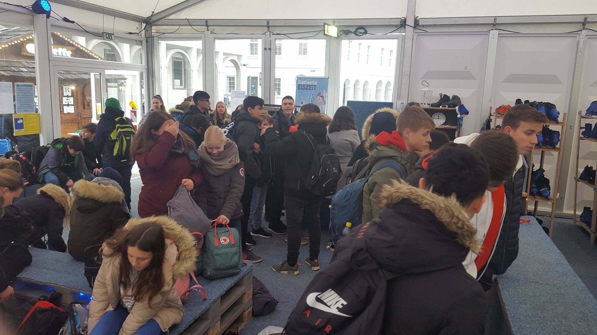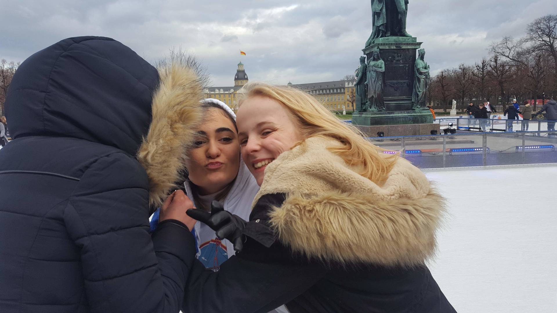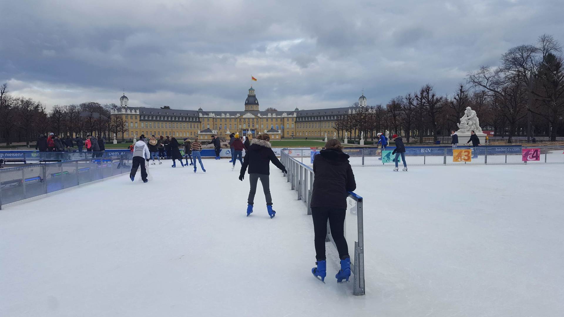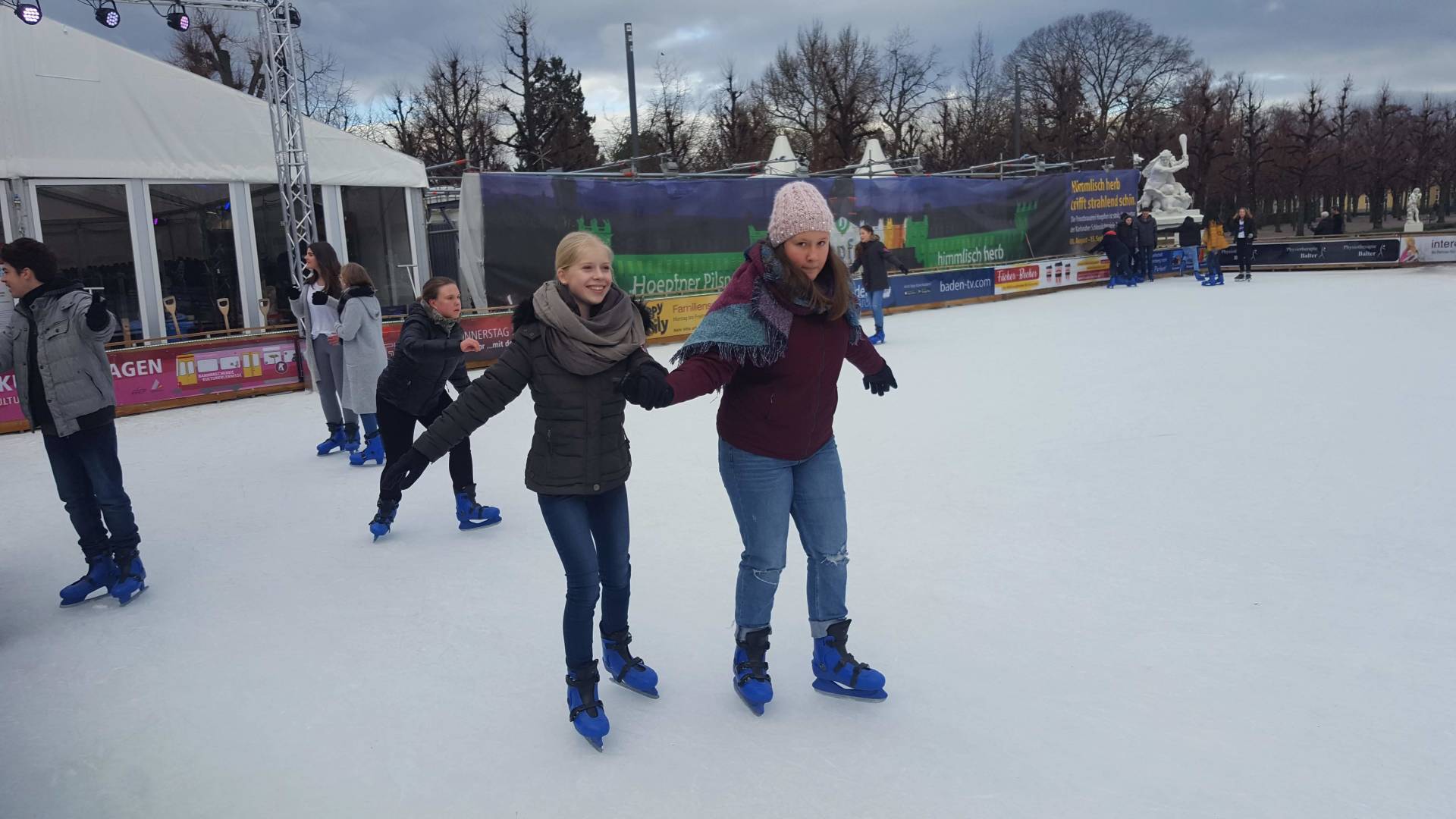 Januar 2019 - Was für eine gelungene Aktion! Am Montag, den 14.1., wurden die Hefte und Stifte aller Achtklässler schon etwas früher als sonst in den Schulranzen gepackt. Anstatt die Schulbank zu drücken, ging es in der 5. und 6. Stunde aufs Eis. Keine 10 Minuten von unserer Schule entfernt fand die Eiszeit vor malerischer Kulisse - dem Schloss - statt. Da lassen wir uns nicht zweimal bitten. Knapp 80 Schülerinnen und Schüler waren dabei und die meisten schnallten sich auch Schlittschuhe um =). Zwischenzeitlich kam - an dem sonst so düsteren Tag - sogar die Sonne heraus. Es wundert nicht, dass es ein rundum gelungener Kurzausflug mit ausgelassener Stimmung war.